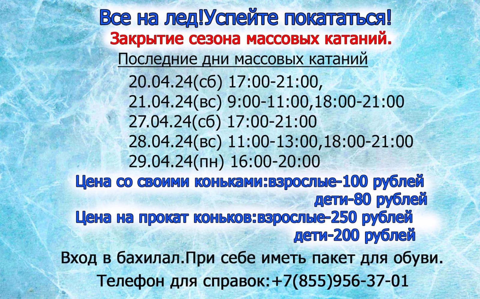 Ледовый Дворец приглашает в весенние каникулы всех желающих на массовое катание!