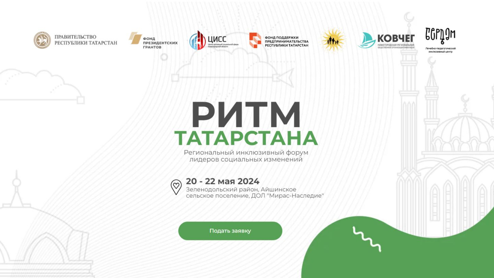 Министерство экономики Республики Татарстан сообщает о проведении регионального инклюзивного форума лидеров социальных изменений «Ритм Татарстана», который пройдет с 20 по 22 мая 2024 года в Зеленодольском районе, Айшинском сельском поселении, в ДОЛ «МИРАС-Наследие». На форуме «Ритм Татарстана» соберутся предприниматели, стремящиеся к развитию региона и страны через социальные проекты.