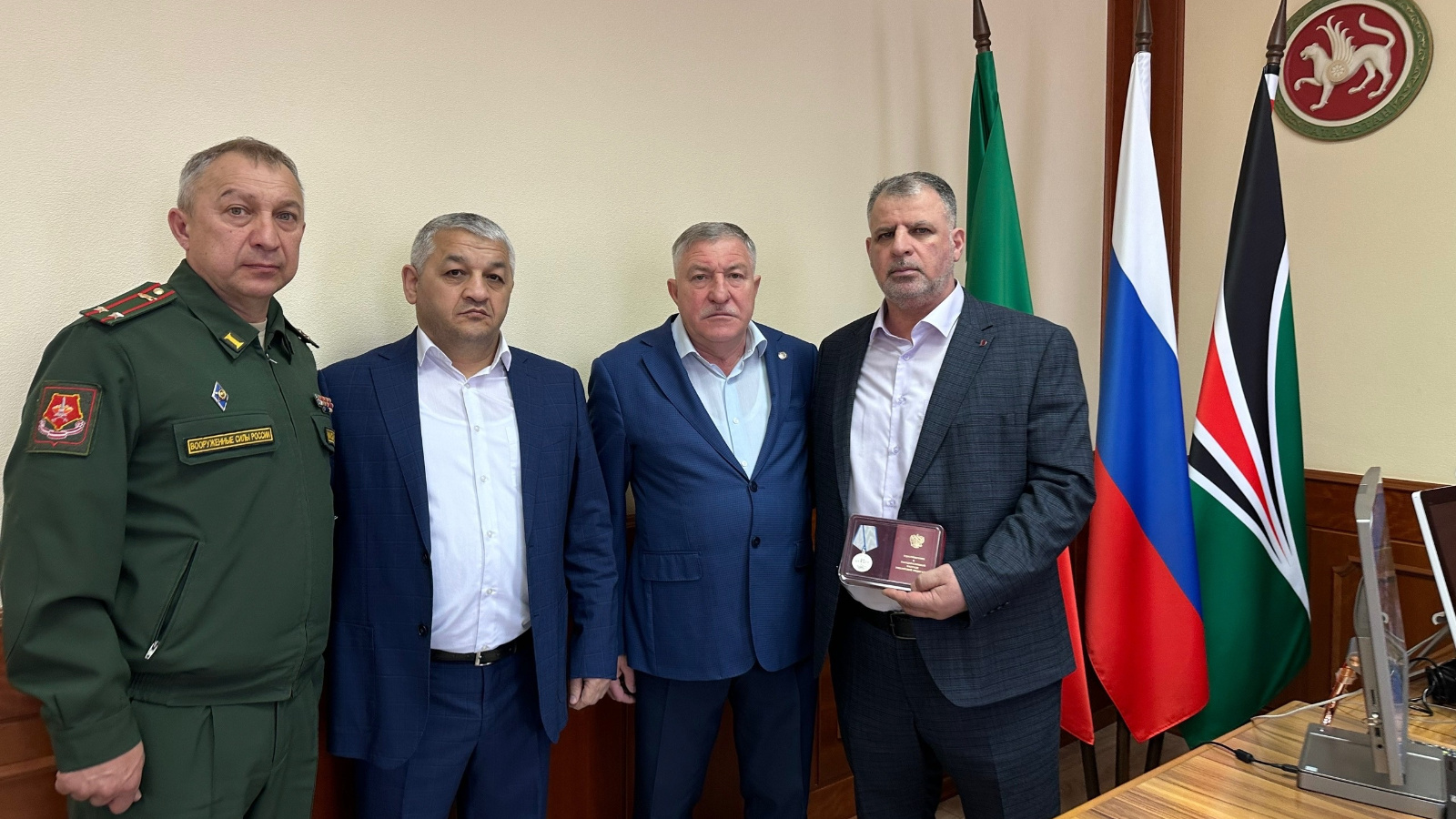 Сегодня Глава Лениногорского района Рягат Хусаинов вручил медаль «За отвагу» посмертно отцу солдата Садыхову Мехману Джами оглы.