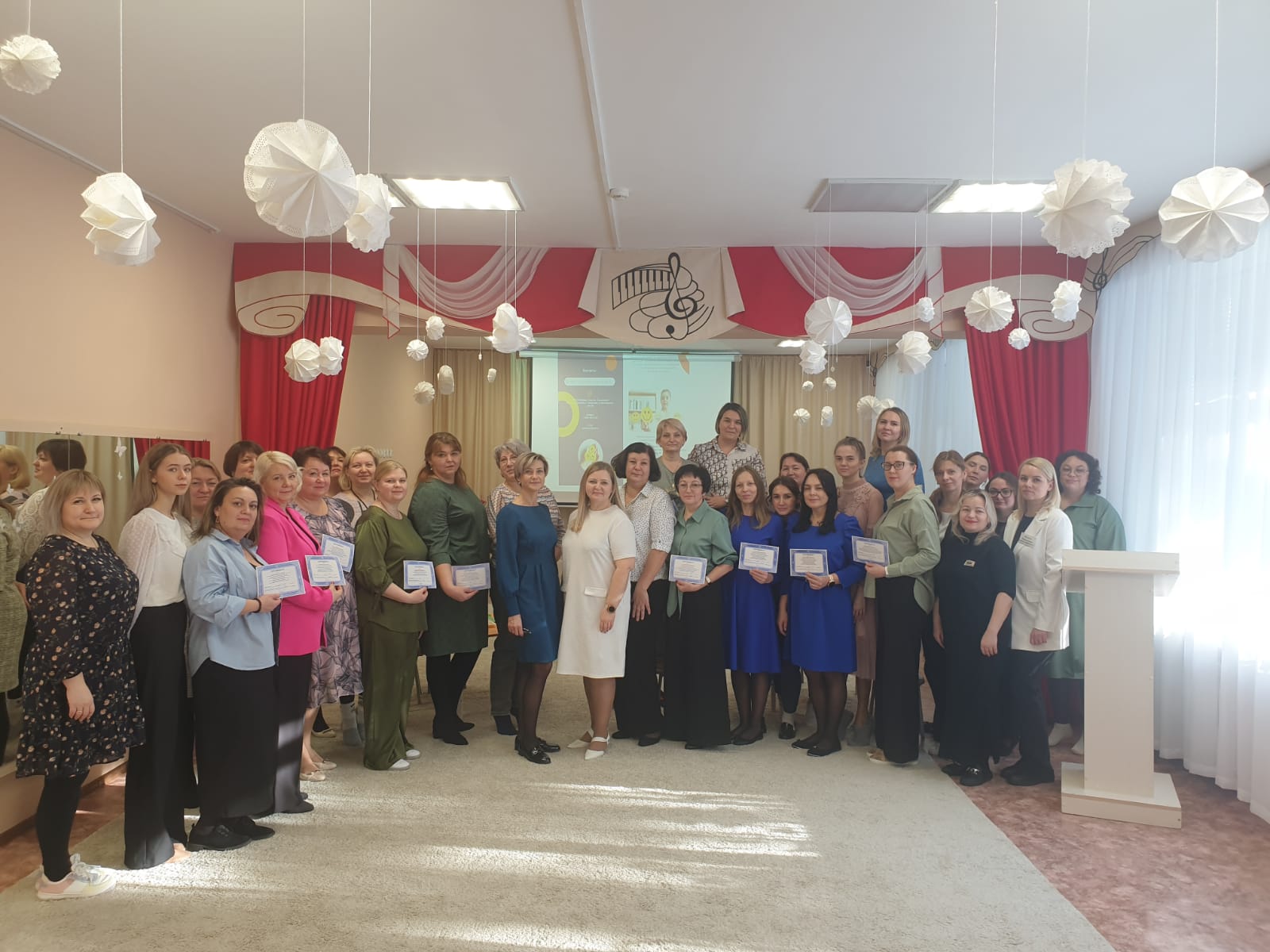 Педагоги старшего и подготовительного возраста поблагодарили дружный коллектив детского сада 12 за прекрасную организацию и теплый прием и за яркие выступления, презентации педагогов, интересный материал, который они представляли. Семинар прошёл с большим успехом, участники отметили, что скучно им не было, они пополнили свою профессиональную копилку современными, актуальными технологиями.