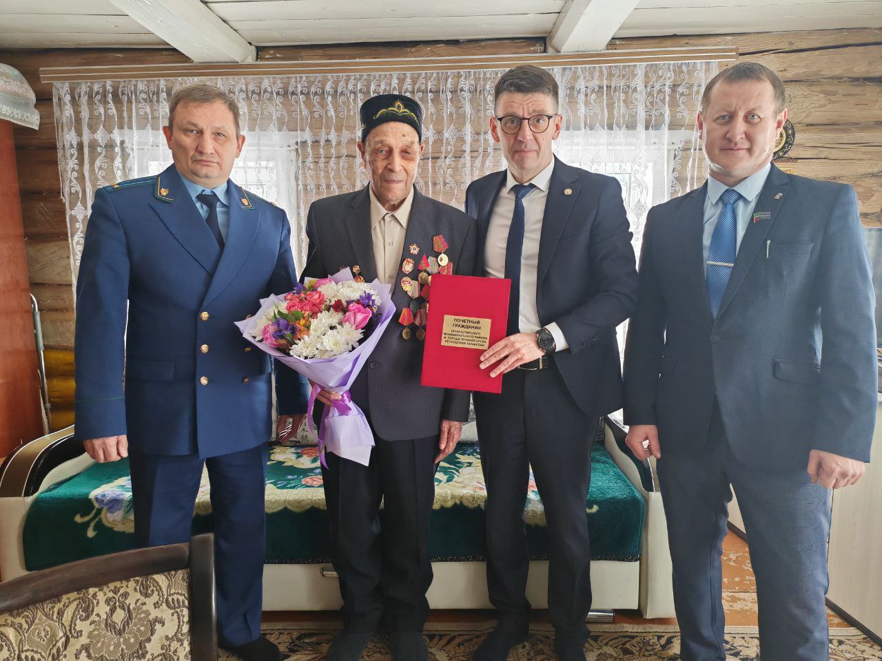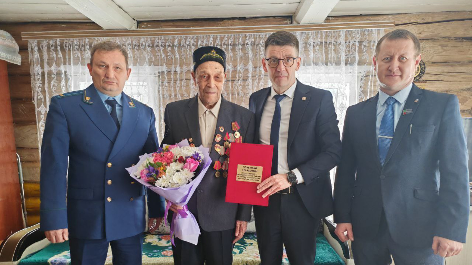 Звание Почётного гражданина Лениногорского района и города Лениногорск, а также юбилейную медаль «80 лет Победы в Великой Отечественной войне 1941-1945 гг.» Сафуанову Исмагилу Сафуановичу вручили Лениногорский городской прокурор Гимаев Марсель Маратович и руководитель Исполнительного комитета муниципального образования "ЛМР" Марат Гирфанов.