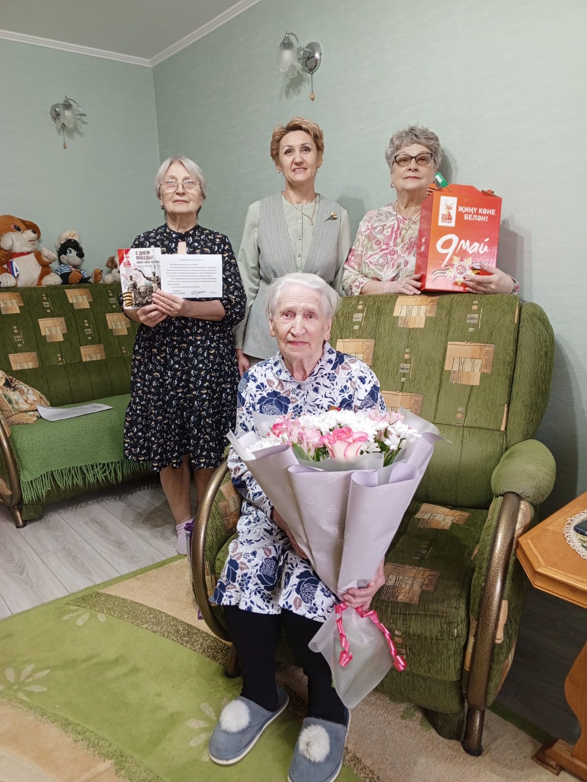 Заместитель главы муниципального образования "город Лениногорск" Галия Котдусовна Урманова поздравила Елену Семёновну Алтунину с 95-летием и вручила ей подарок от Раиса Республики Татарстан к 9 Мая.