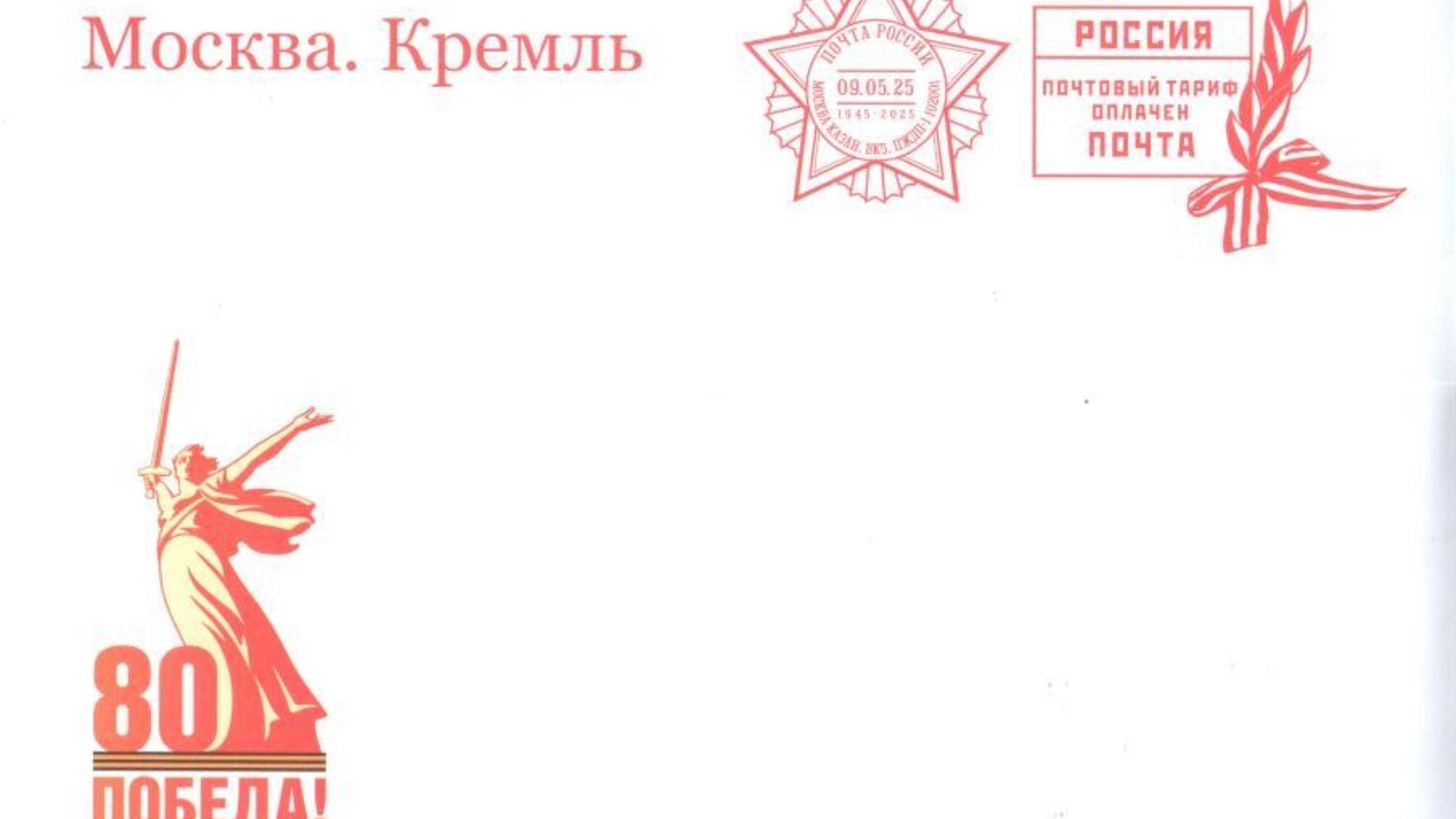 В почтовом отправлении находится именная открытка с поздравлением с 80-й годовщиной Победы в Великой Отечественной войне, подписанным Президентом России.