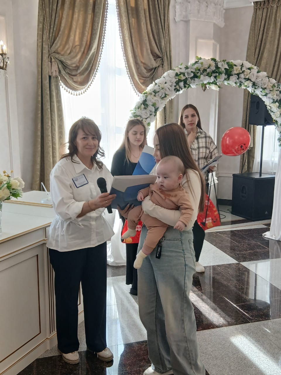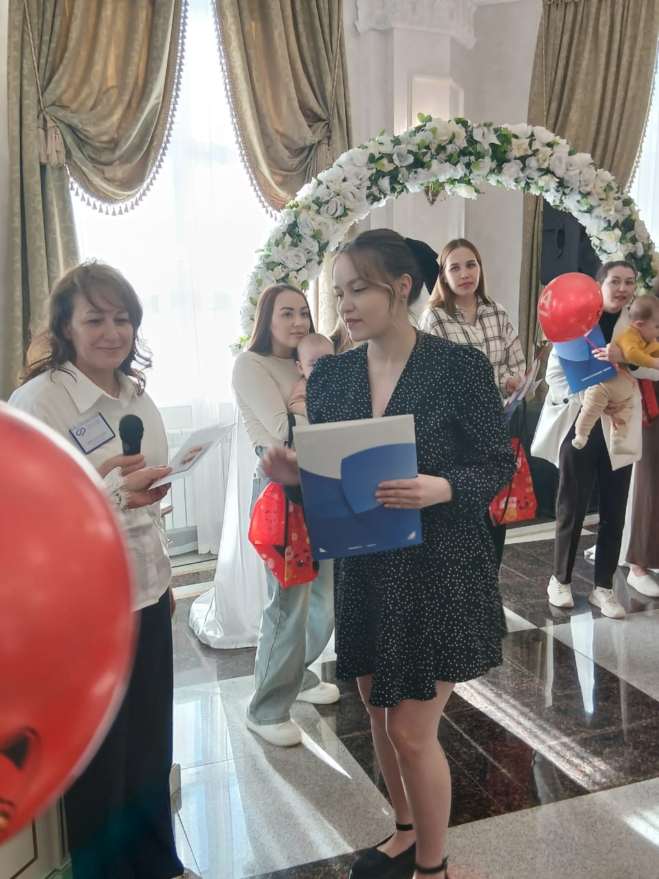 Во Дворце бракосочетаний г.Лениногорска прошло торжественное вручение государственных сертификатов на материнский капитал – 9 семьям. С приветственной речью к ним обратились начальник отдела ЗАГС исполнительного комитета муниципального образования «Лениногорский муниципальный район» Халимова Кадрия Фаритовна, заместитель руководителя клиентской службы Социального фонда Сираева Гульназ Гаделевна, Руководитель офиса Альфа Банк Шереметьева Марина.