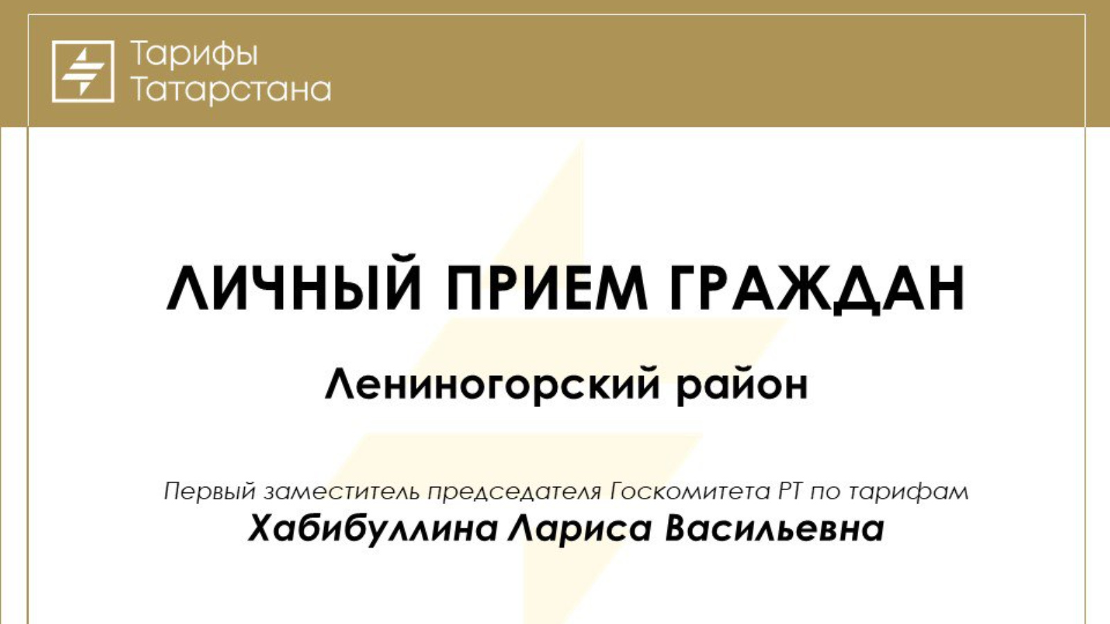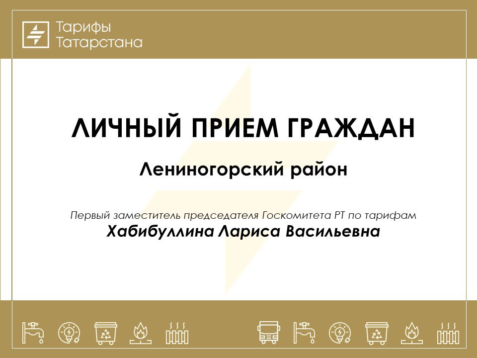 Уважаемые лениногорцы! Состоится приём граждан с первым заместителем председателя Госкомитета РТ по тарифам Ларисой Хабибуллинной.