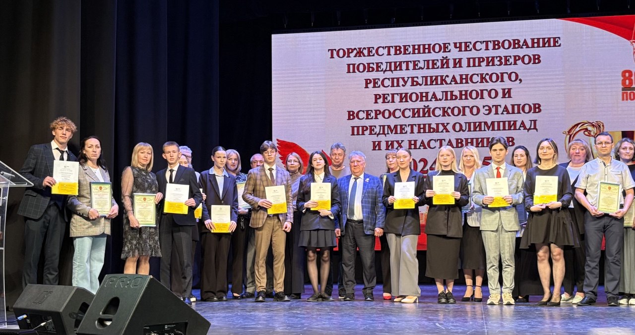 169 учащихся приняли участие в региональном этапе, из них 89 стали победителями и призёрами. 6 победителей и 42 призёра регионального этапа Всероссийской олимпиады. В заключительном этапе республиканской олимпиады школьников среди 4-8 классов 16 призеров, среди 4-11 классов 6 призеров. В заключительном этапе республиканской олимпиады «Путь к Олимпу» в 2023-2024 гг. 13 призеров, в 2024-2025 гг. 3 победителя, 14 призеров, 64 наставника отмечены грамотами за подготовку учеников.