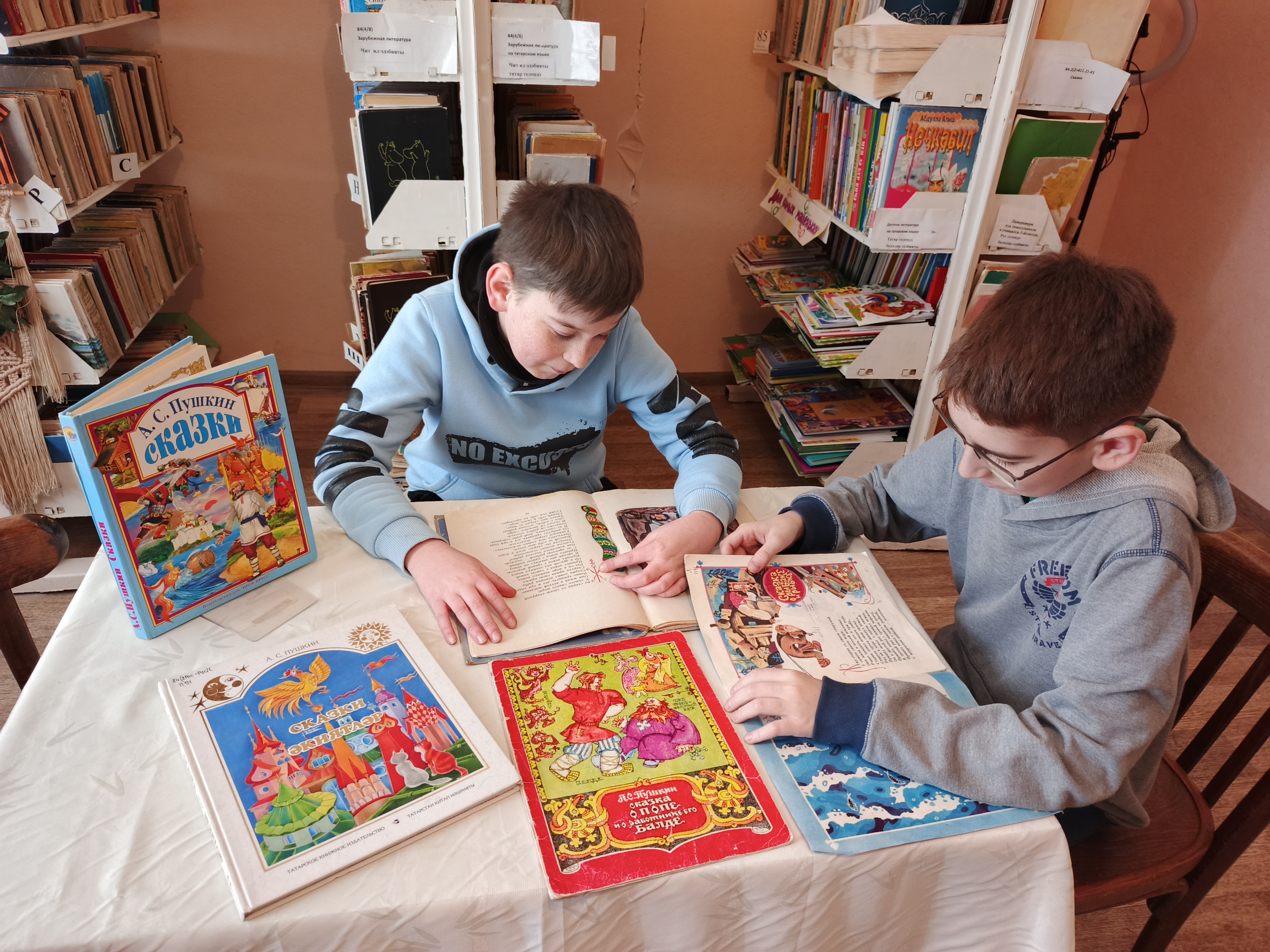 - Обзор книжной выставки «Сказочник Лукоморья» — знакомство с книгами Пушкина на выставке, где были представлены как известные произведения, так и менее знакомые читателям.
