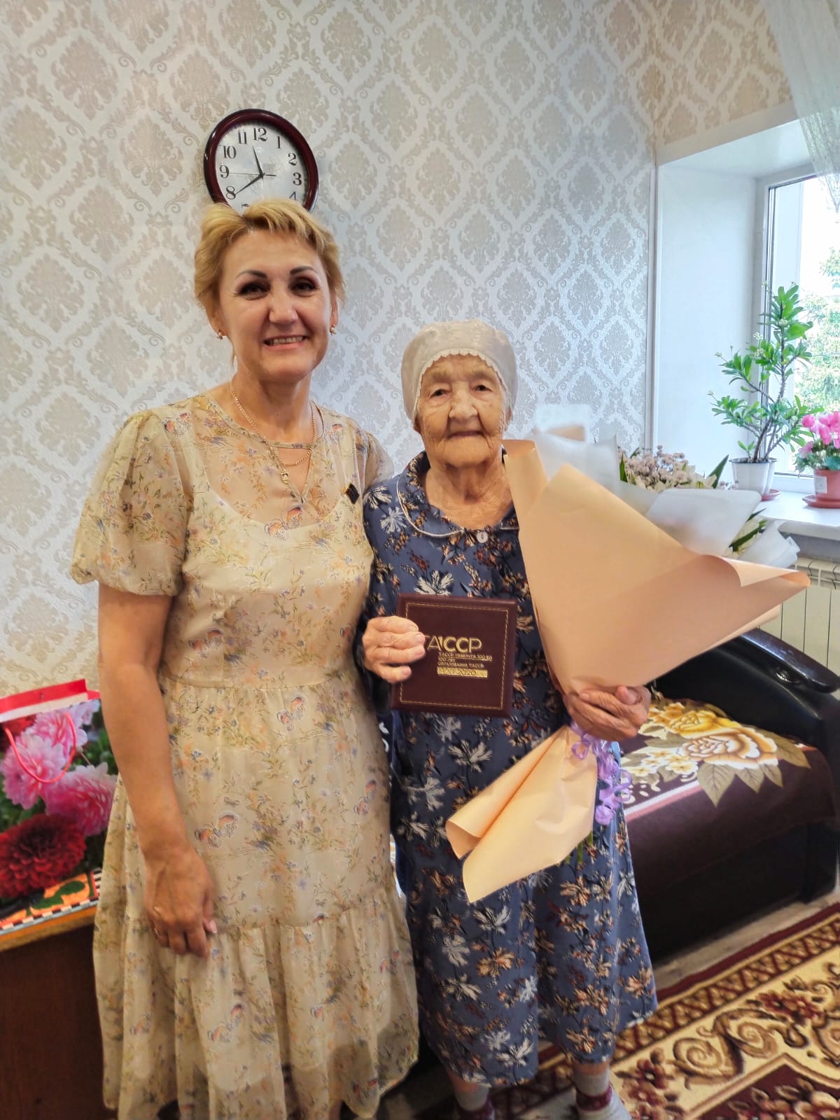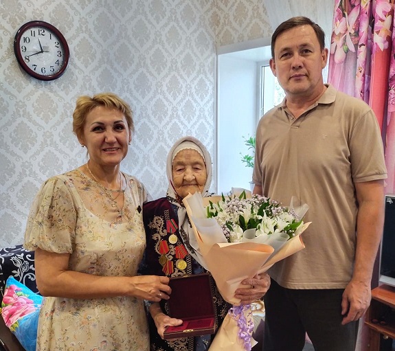 Заместитель Главы города Лениногорск Галия Котдусовна Урманова вручила медаль «100 лет со дня образования ТАССР» Кашаповой Аклиме Абдунагимовне — 100-летней жительнице села Шугурово.