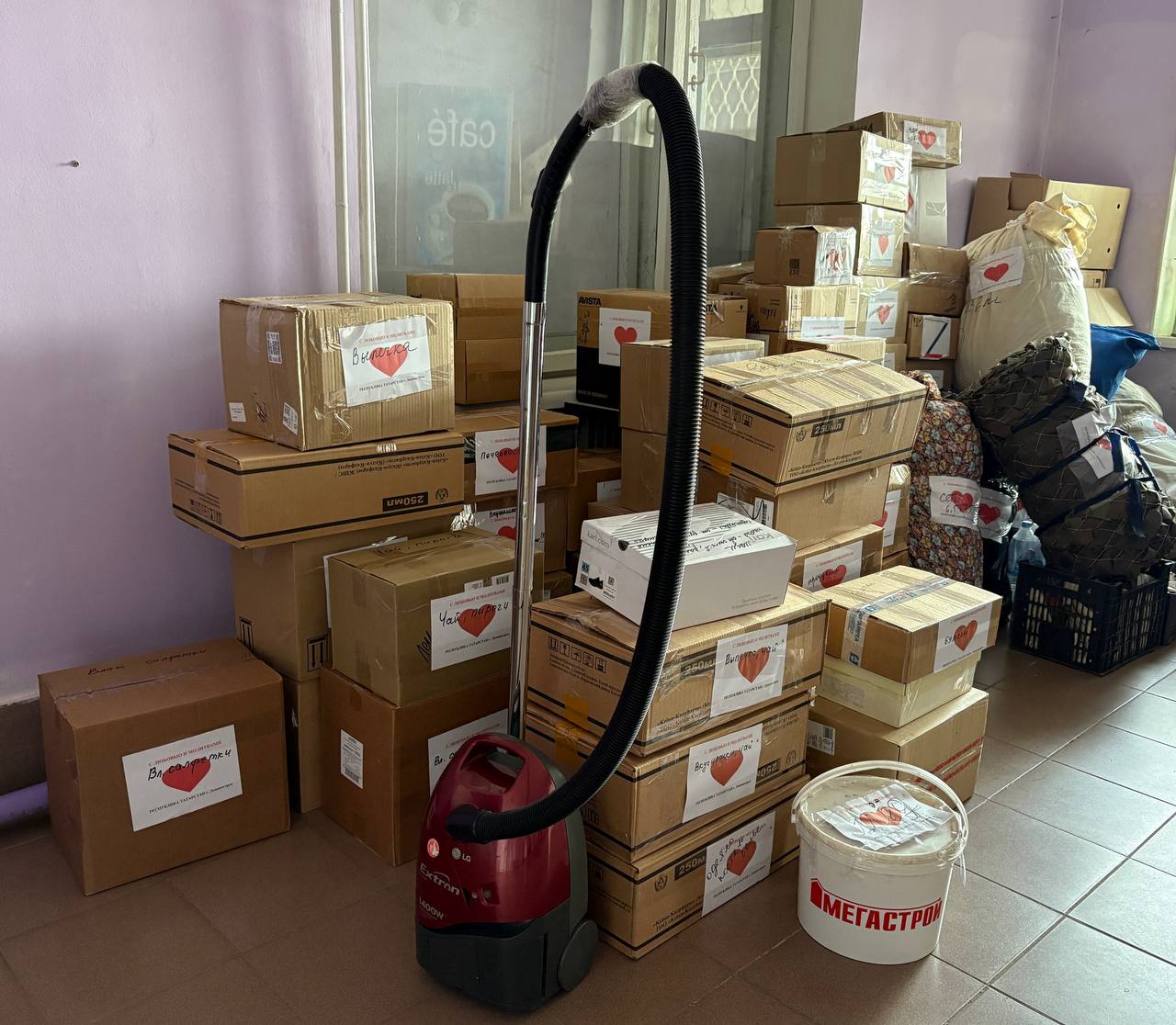 В этот раз для наших бойцов собрали самое необходимое: 9 маскировочных сетей, лекарства и медикаменты, домашнюю выпечку, резину для колёс автомашин, автомасла и даже пылесос.