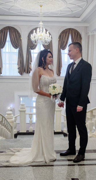 Мы поздравляем прекрасных и замечательных молодоженов с днем свадьбы! Хотим пожелать вам большой, светлой и взаимной любви. Будьте всегда трепетны и нежны друг к другу так же, как сегодня. Берегите друг друга. Мечтайте в одном направлении. Дарите друг другу радость, тепло и нежность. Находите время друг для друга: путешествуйте, отдыхайте, наслаждайтесь. И просто будьте счастливы!