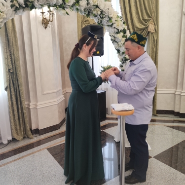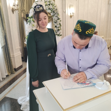 Во Дворце бракосочетаний г. Лениногорска молодожены Ильнар и Лия Мингазовы провела церемонию бракосочетания в татарском национальном стиле, что стало приятной неожиданностью для сотрудников отдела ЗАГС.
