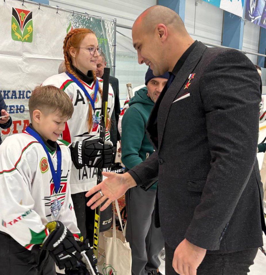 Глава района Марат Гирфанов и заместитель министра труда, занятости и социальной защиты Республики Татарстан Расим Баксиков поздравили ребят с заслуженной победой и вручили медали, кубок победителя турнира.
