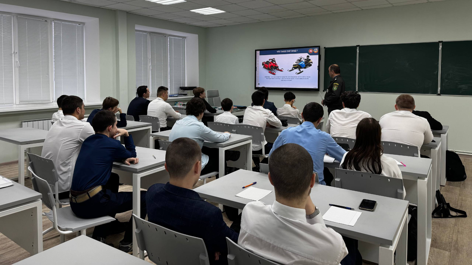 Нчальник отдела Гостехнадзора по Лениногорскому району Ильнур Галимов встретился со студентами и провёл содержательную информационную беседу, посвящённую вопросам безопасности, соблюдению действующих норм и стандартов в сфере эксплуатации техники.