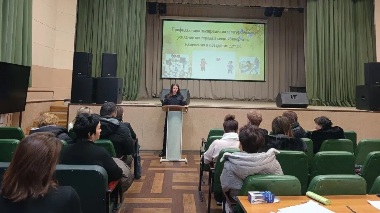 Перед родителями выступили заместитель начальника полиции Артём Ермошкин, инспектор по делам несовершеннолетних Виктория Виниченко, исполняющая обязанности директора местного отделения «Форпост» Светлана Иванова.