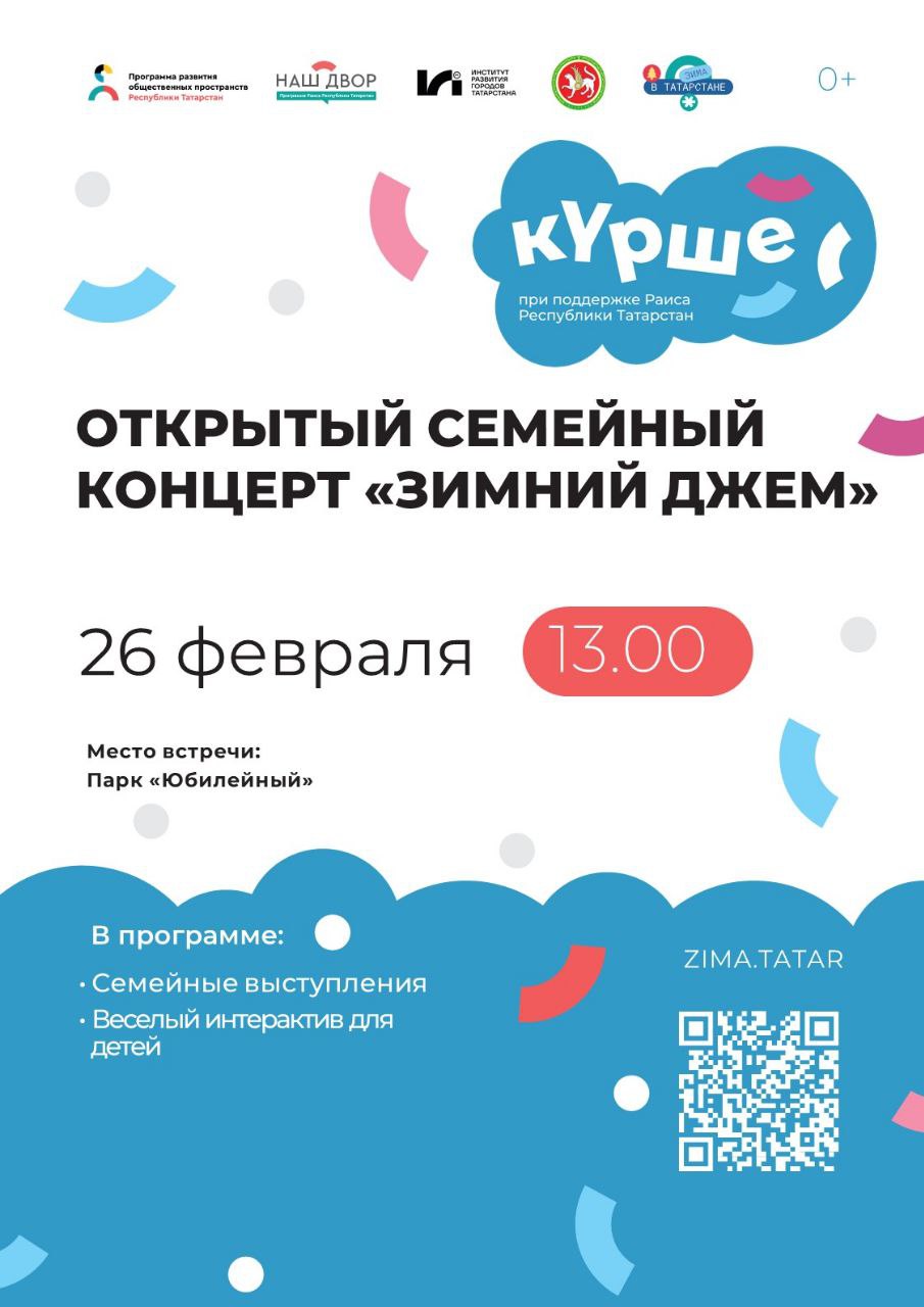 Друзья, также завтра, 26 февраля в 13:00 приглашаем всех в парк «Юбилейный» на открытый семейный концерт «Зимний джем».
