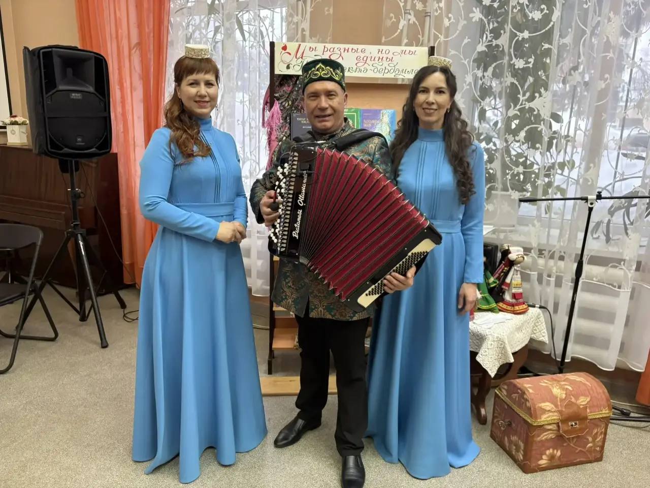 Начало вечера ознаменовалось театрализованным выступлением ансамбля «Райхан», который представил зрителям забытые народные танцы, песни и сценки, передающие дух и традиции татарского народа.