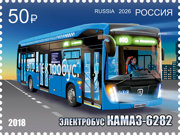 Почта России выпустила в обращение четыре марки, посвящённые грузовой технике и пассажирскому транспорту КАМАЗ. Выпуск приурочен к 50-летию первого грузового автомобиля КАМАЗ, которые сошёл с заводского конвейера в Набережных Челнах в 1976 г.