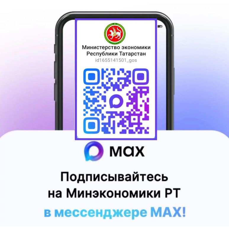 Приглашаем Вас и сотрудников Исполнительных комитетов муниципальных образований Республики Татарстан присоединиться к официальному каналу Министерства экономики Республики Татарстан в мессенджере MAX.