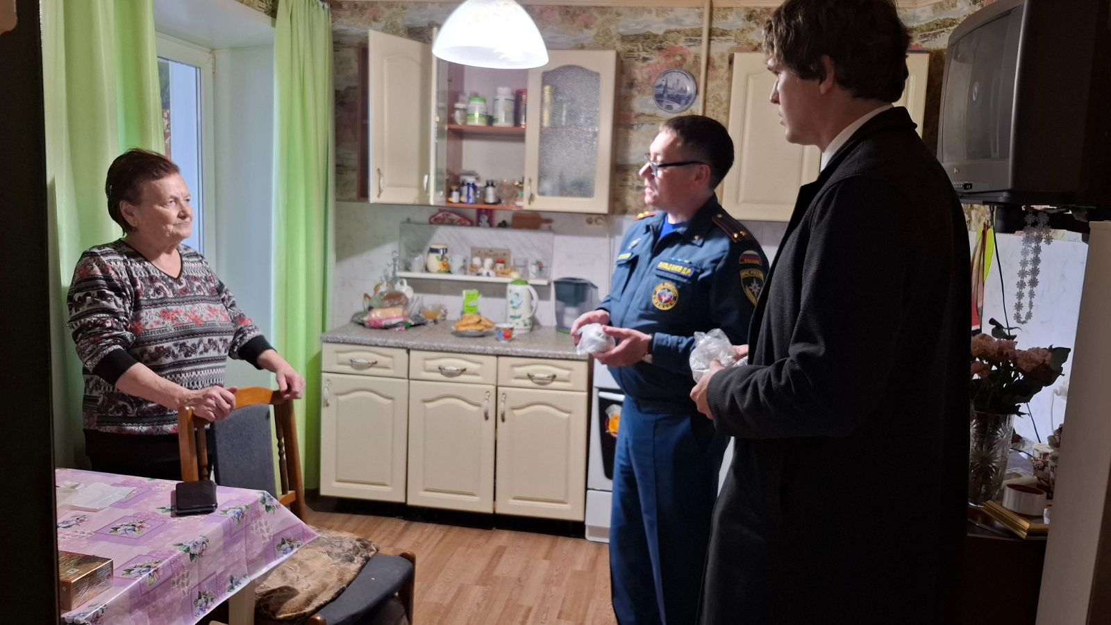 Кроме того, престарелым гражданам изложили подробный алгоритм действий при возникновении пожара – куда звонить, что и как можно тушить подручными средствами, как правильно эвакуироваться из горящего помещения.