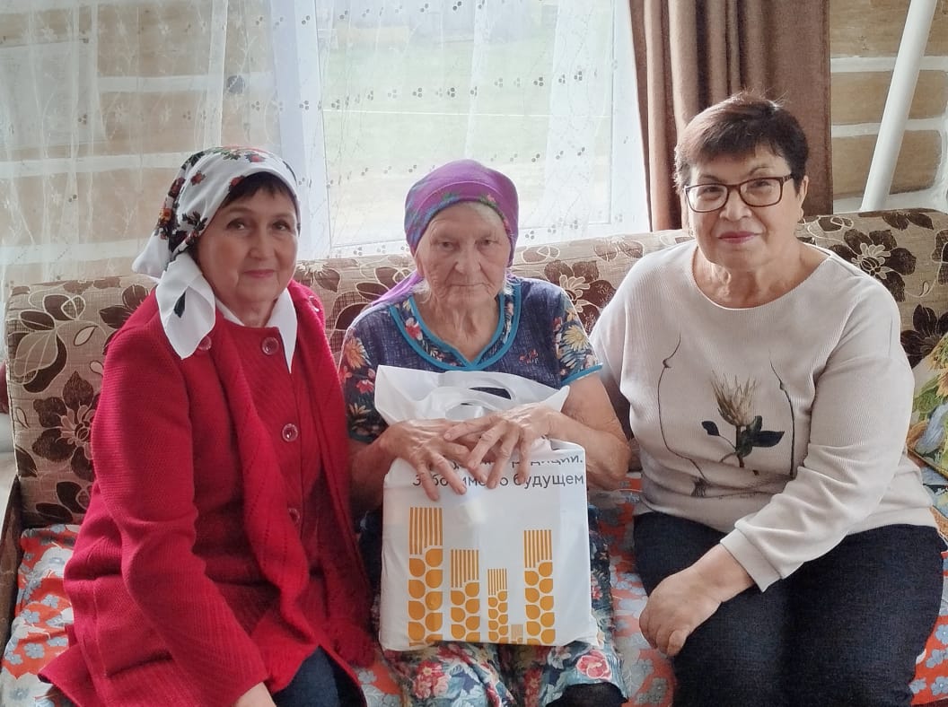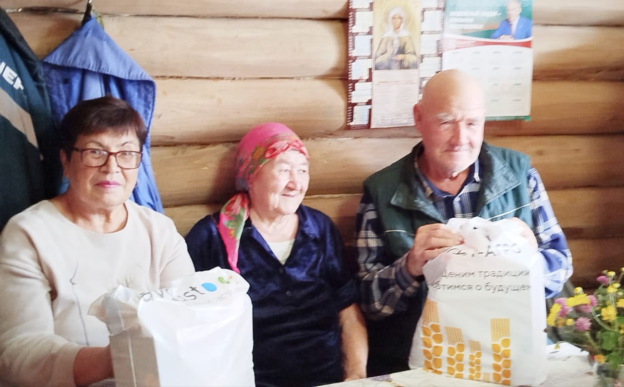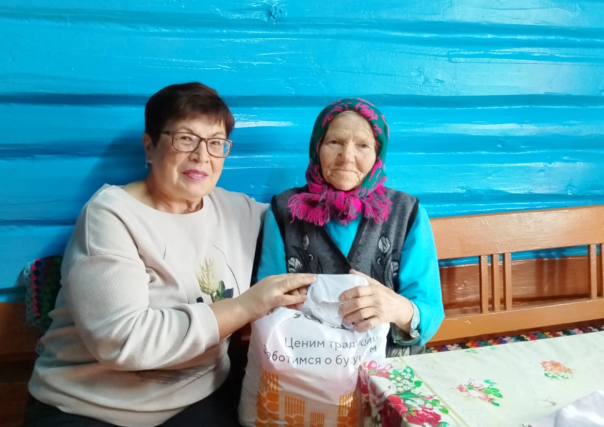 Людям преклонного возраста были вручены продуктовые пакеты от ООО «Агрофирма Лениногорская» и индивидуального предпринимателя Венеры Бадыговой.
