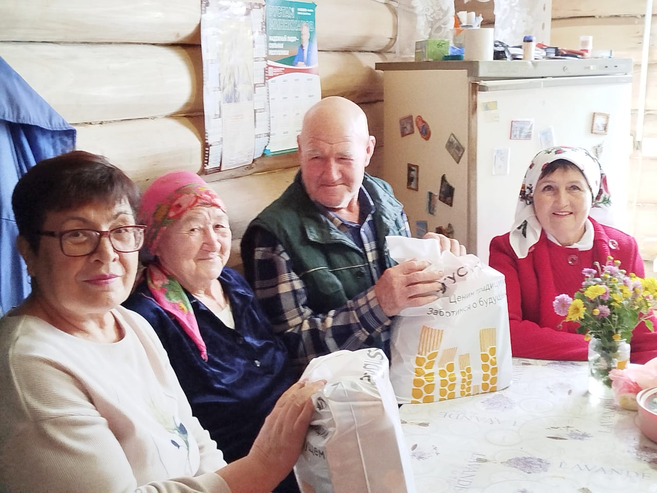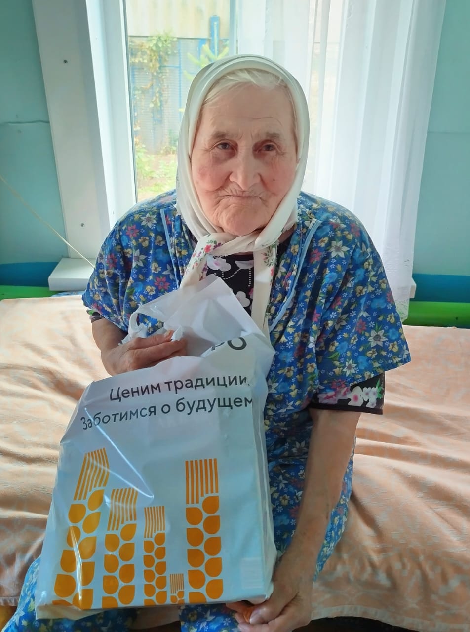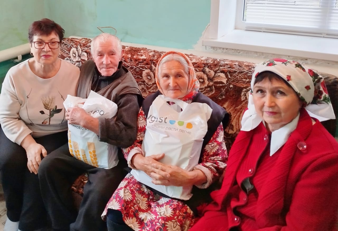 Людям преклонного возраста были вручены продуктовые пакеты от ООО «Агрофирма Лениногорская» и индивидуального предпринимателя Венеры Бадыговой.