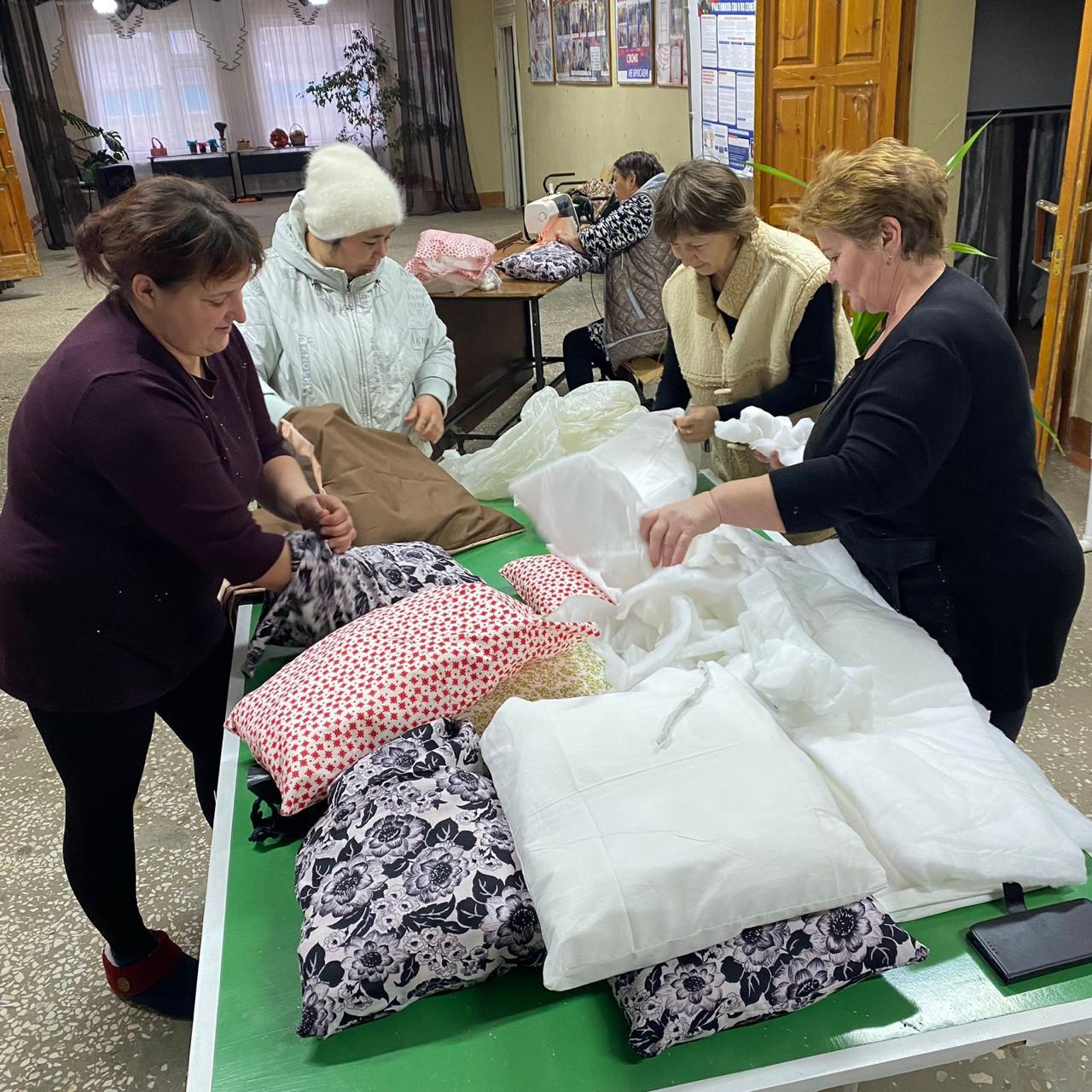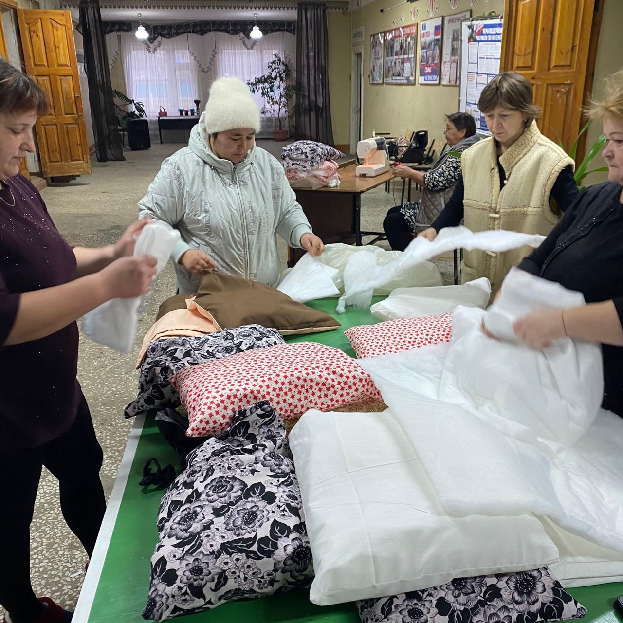 В Новоиштерякском СДК жителями села была организована работа по изготовлению подушек для госпиталя СВО