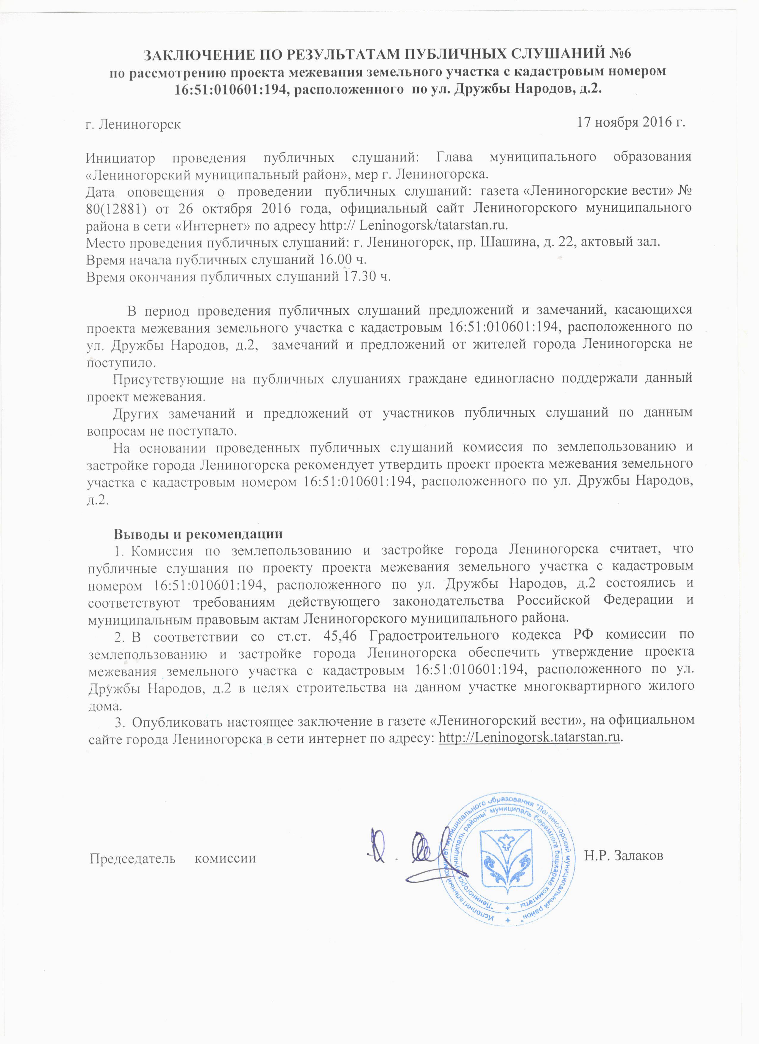 Заключение по результатам публичных слушаний ул.Дружбы Народов