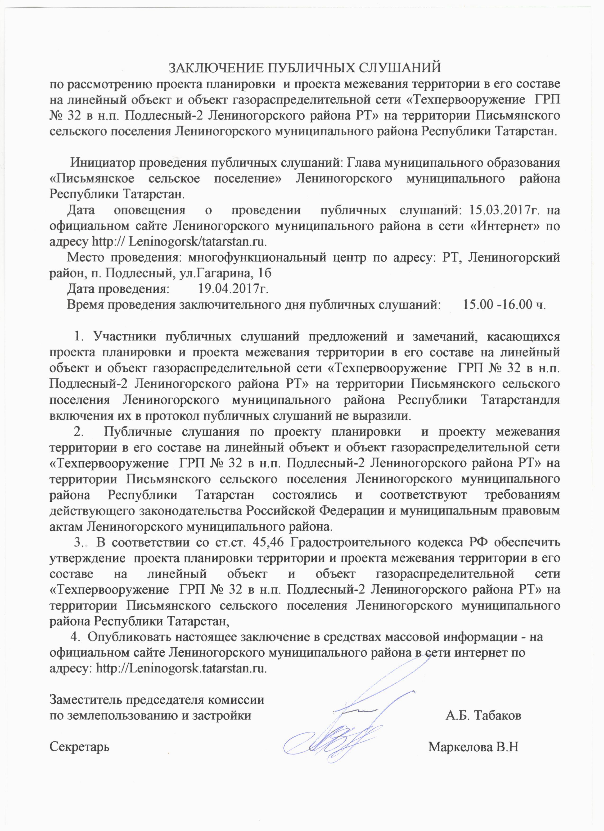 Проект планировки и межевания территории, предусматривающий размещение линейного объекта: «Техперевооружение ГРП№32 в н.п. Подлесный-2 Лениногорского МР РТ»