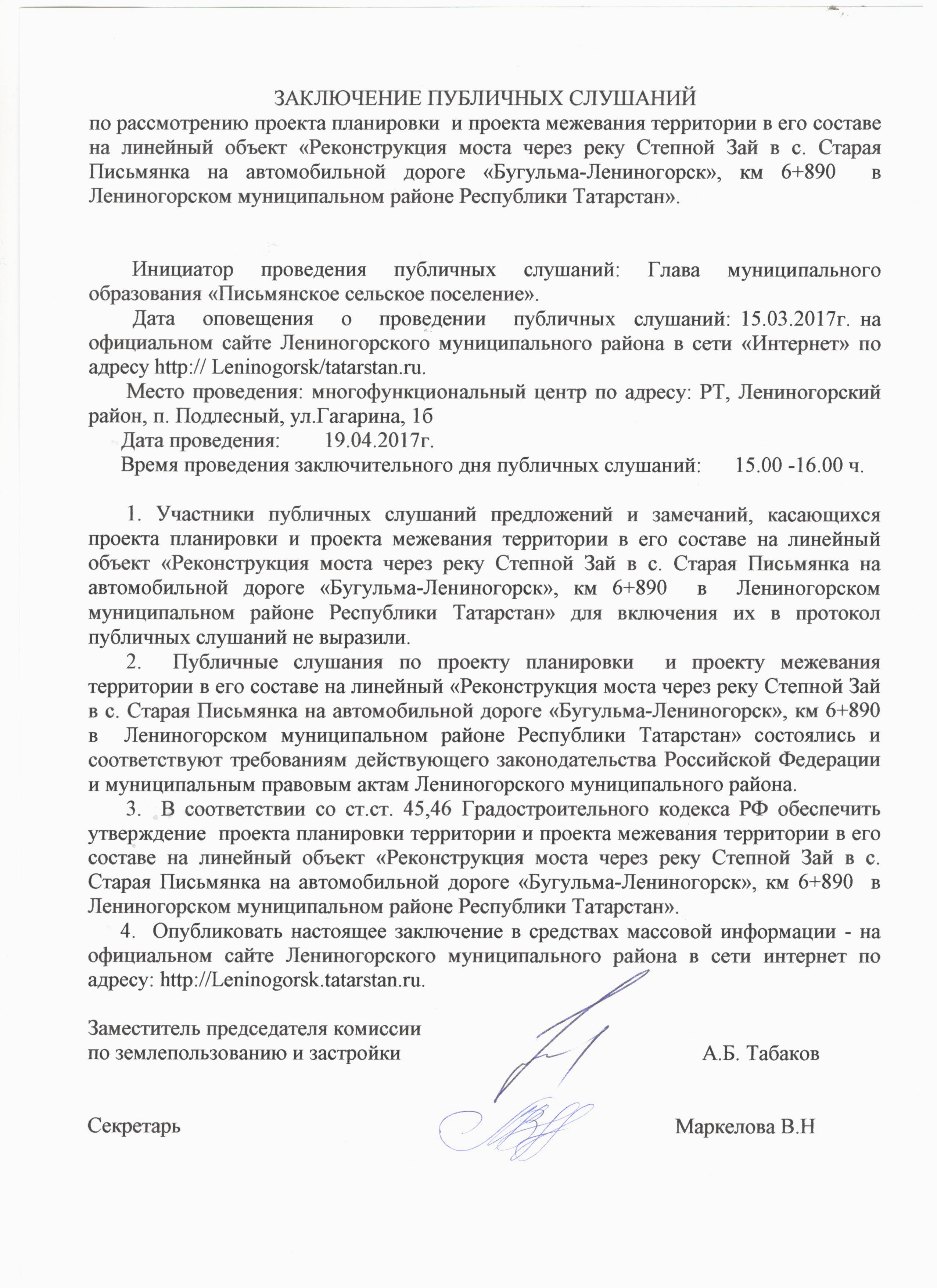 Проектная документация "Реконструкция моста через реку Степной Зай в с. Старая Письмянка на автомобильной дороге «Бугульма-Лениногорск», км 6+890 в Лениногорском муниципальном районе Республики Татарстан 16-24 МП-ППО"
