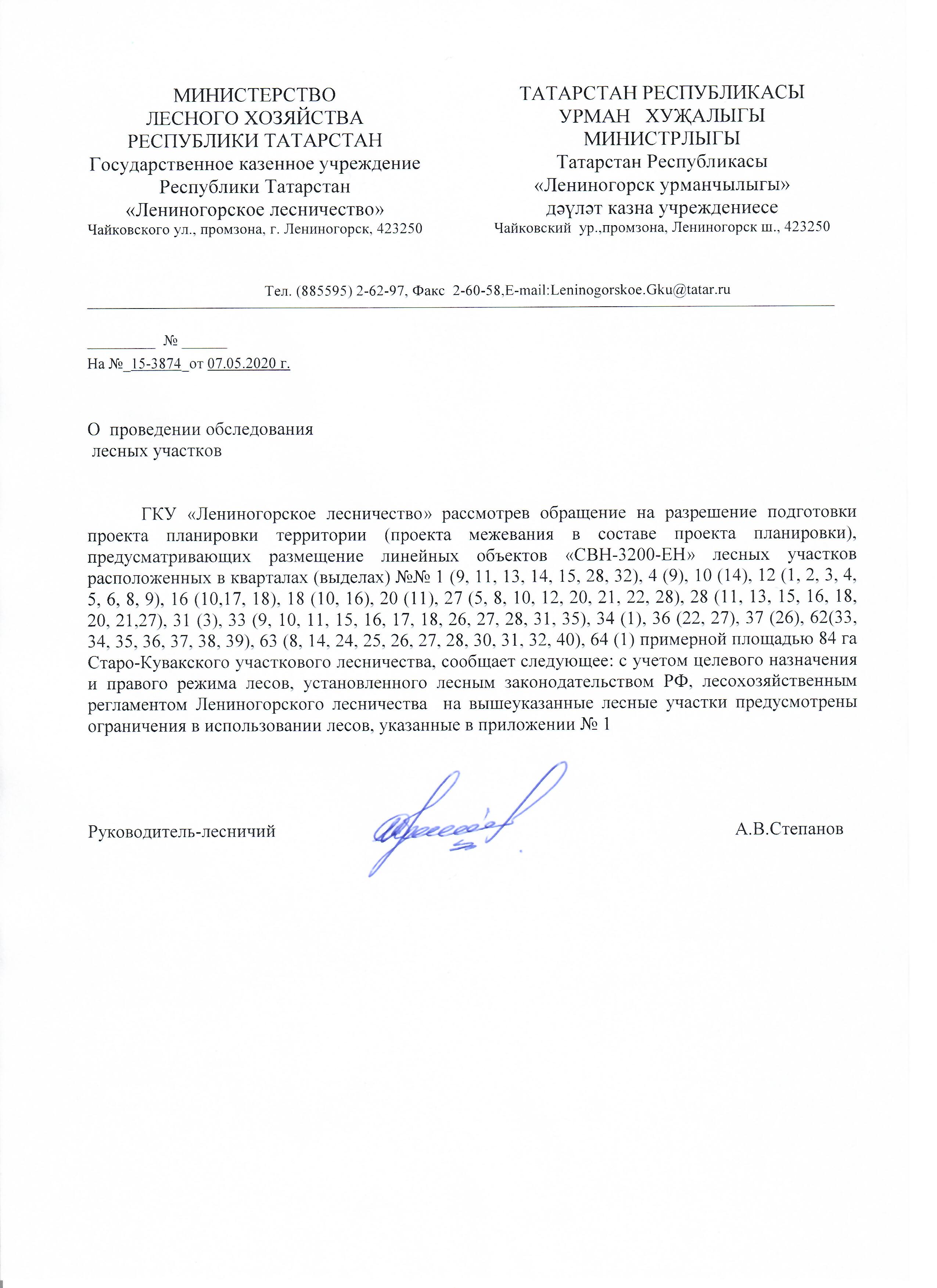 ППиМ для размещения линейных объектов «СВН-3200-ЕН» на землях Старокувакского участкового лесничества, утвержденного 12.08.2020г.