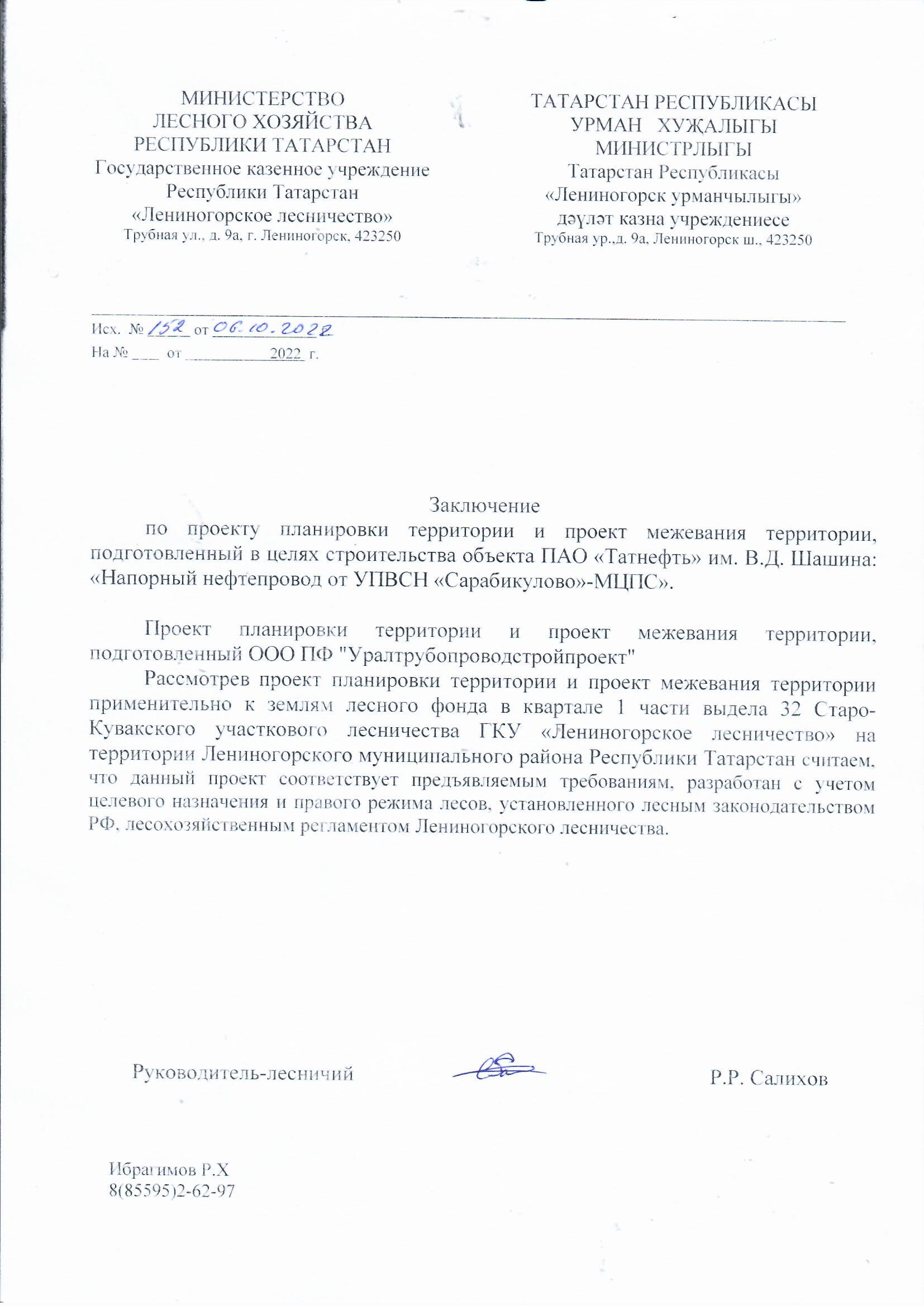 Утверждение ПП и ПМ на объект «Напорный нефтепровод от УПВСН «Сарабикулово»-МЦПС»