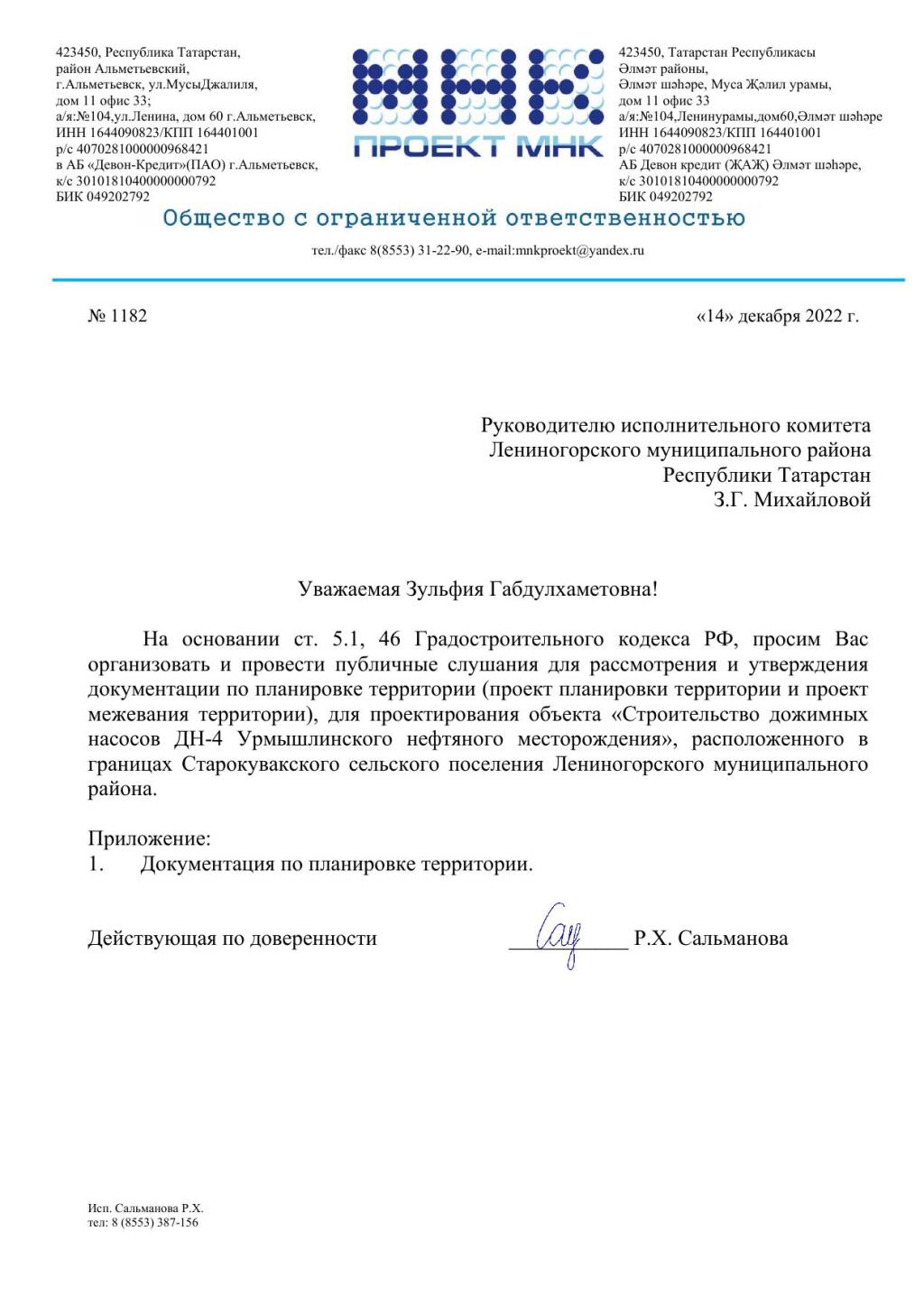«Строительство дожимных насосов ДН-4 Урмышлинского нефтяного месторождения», расположенного в границах Старокувакского сельского поселения