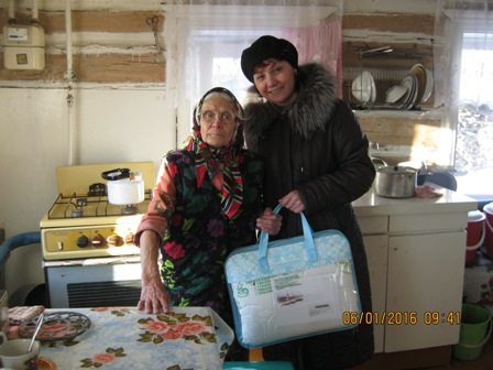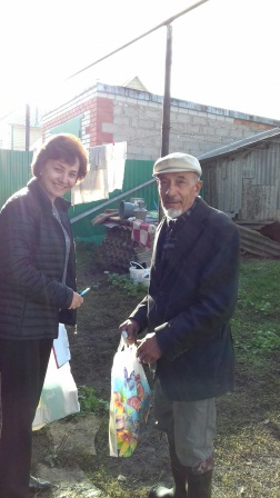 С днем пожилых людей поздравили на дому граждан пожилого возраста. Им были вручены продуктовые наборы спонсированные ООО «Маркс»