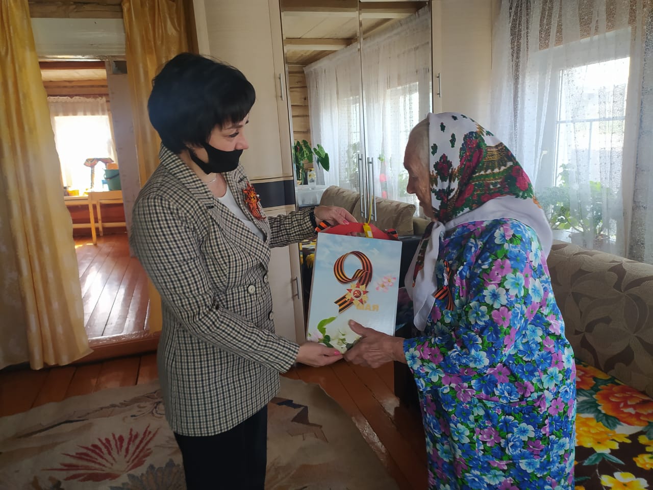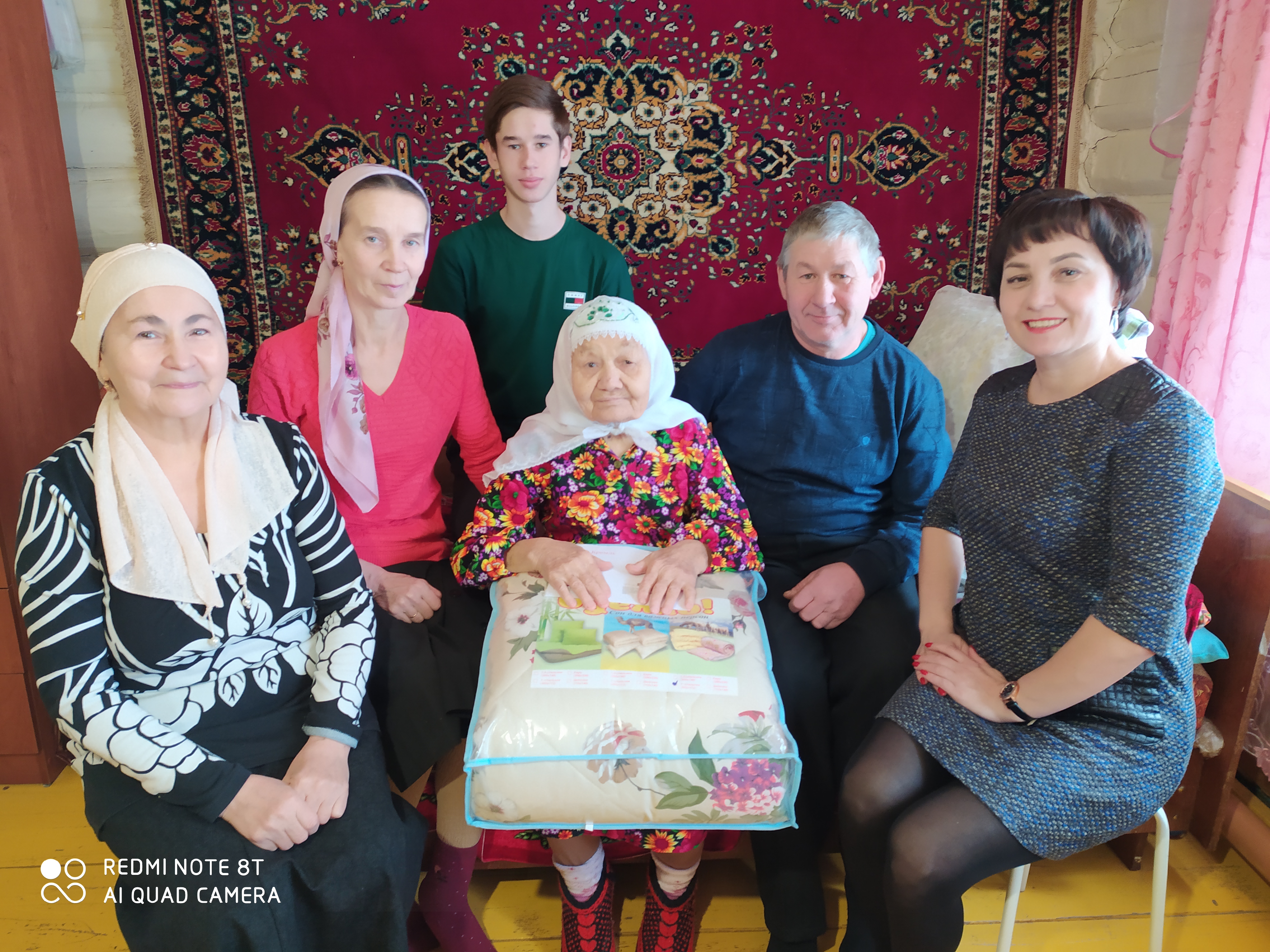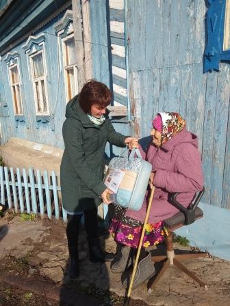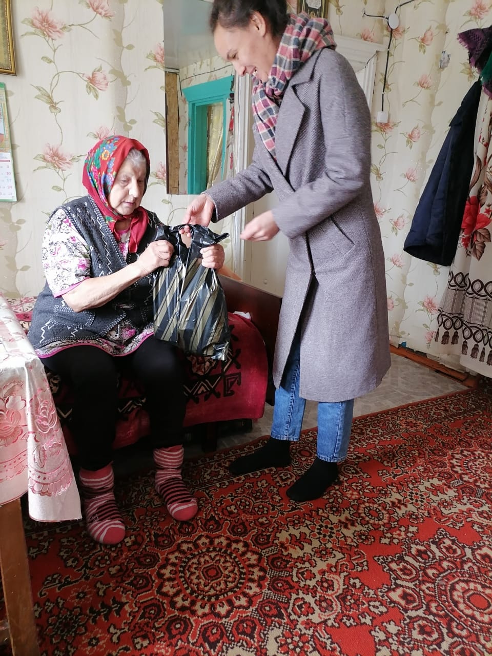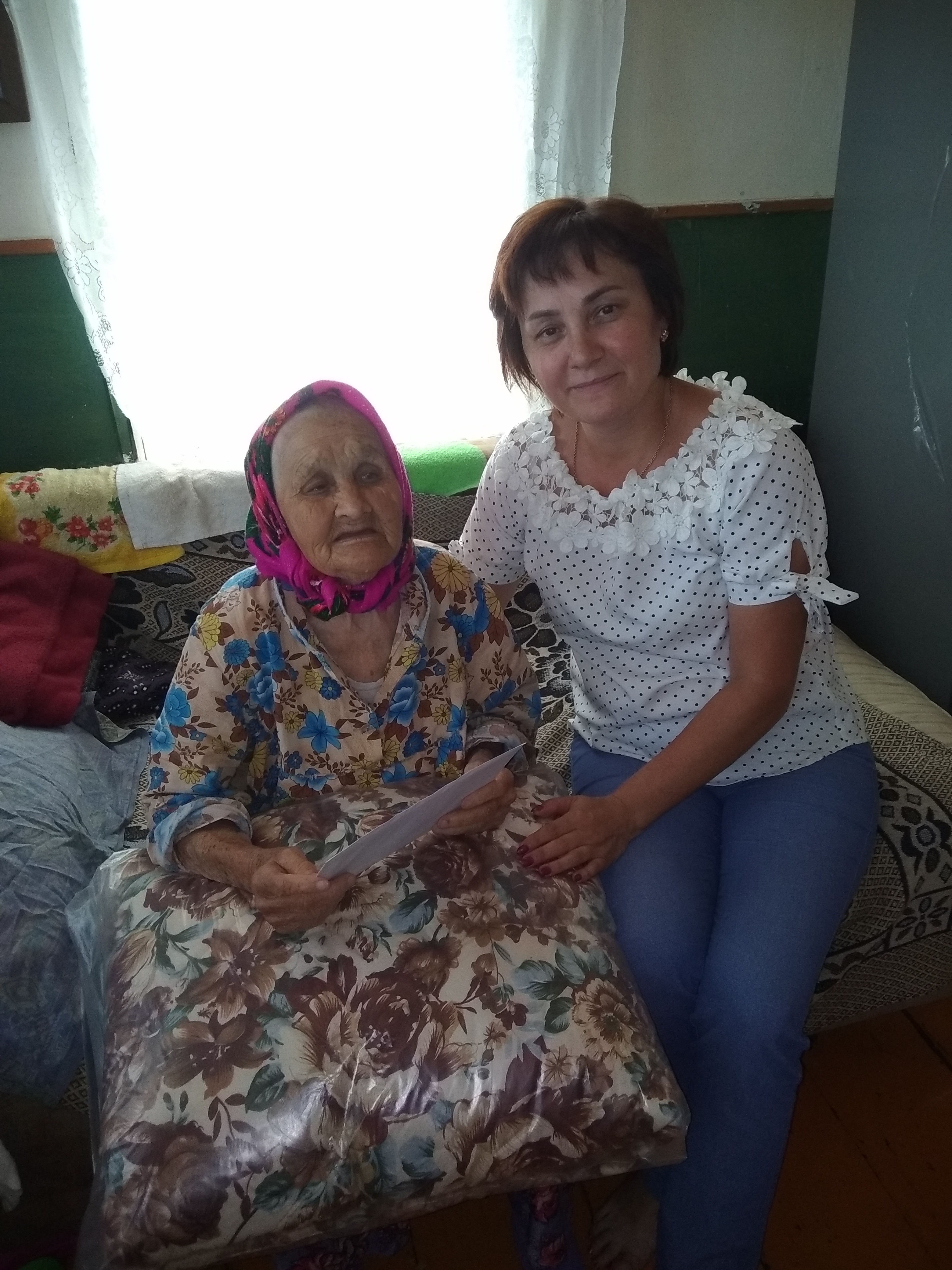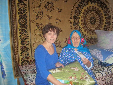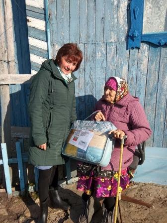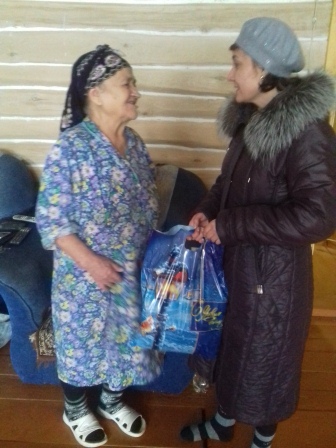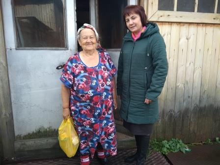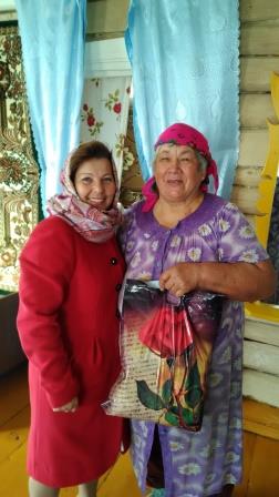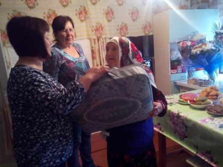 В день памяти жертв политических репрессий глава поселения Рушания Ахметзянова посетила на дому Миназову Замзамию Низамовну и вручила ей продуктовый набор.
