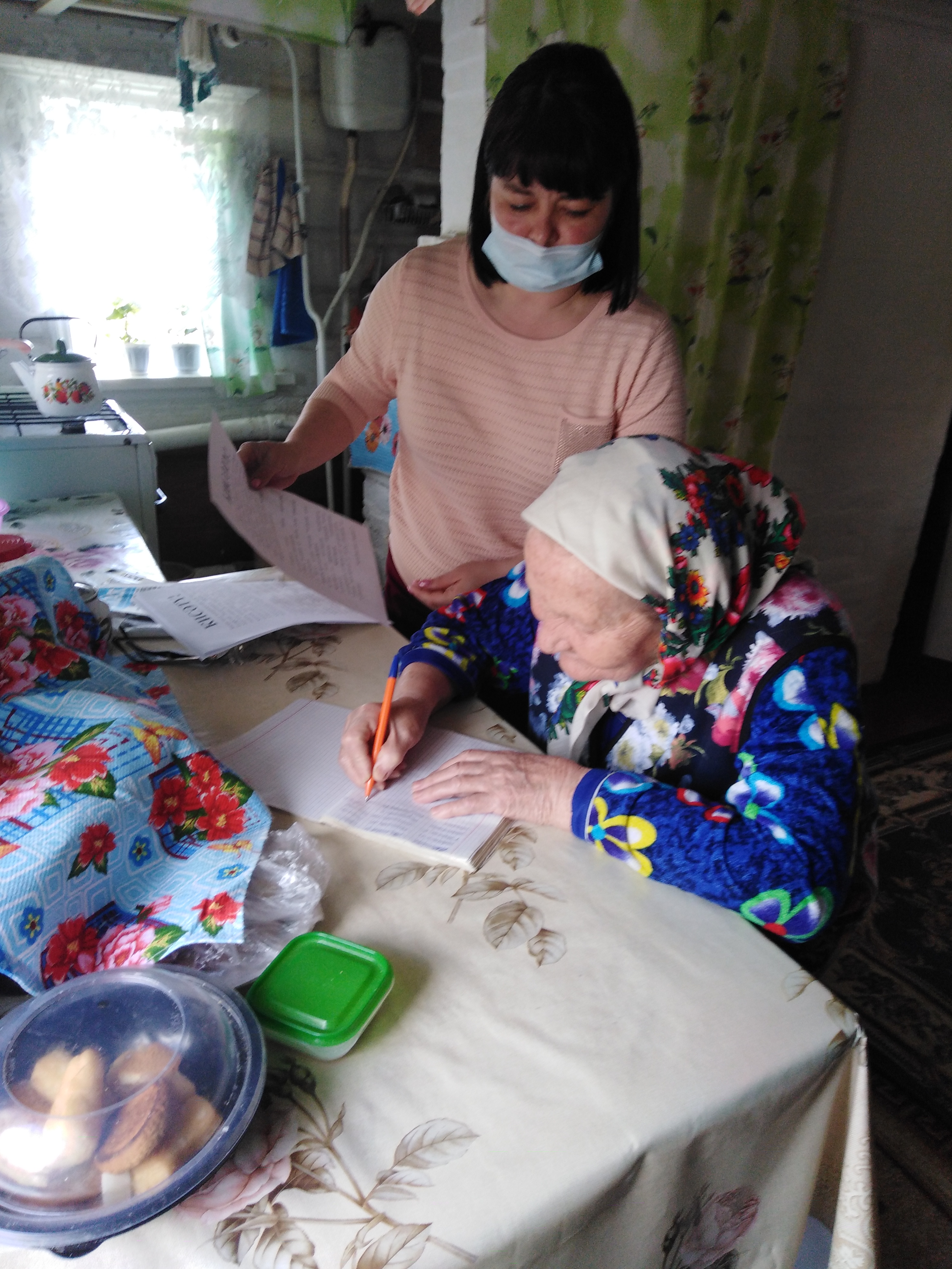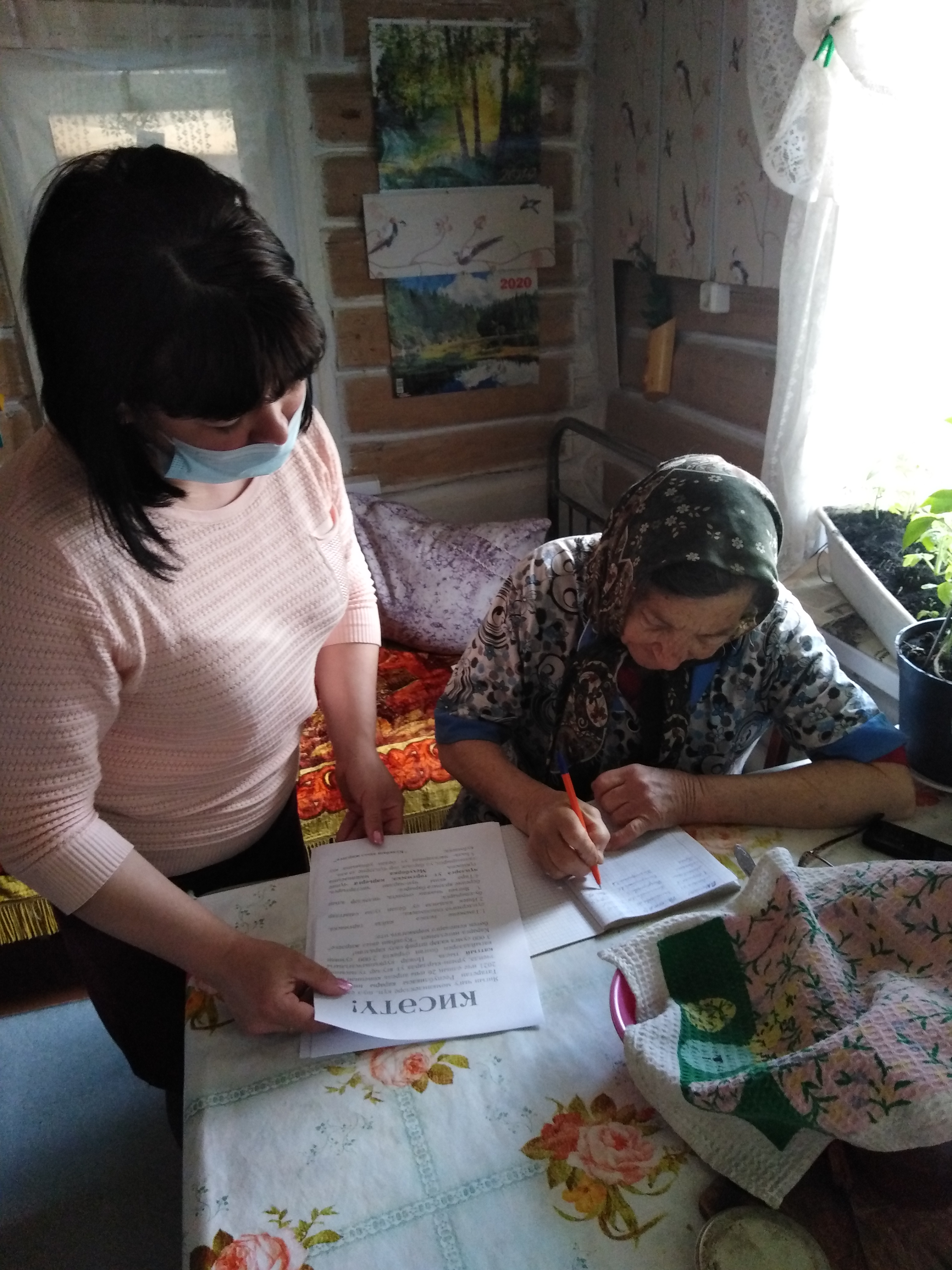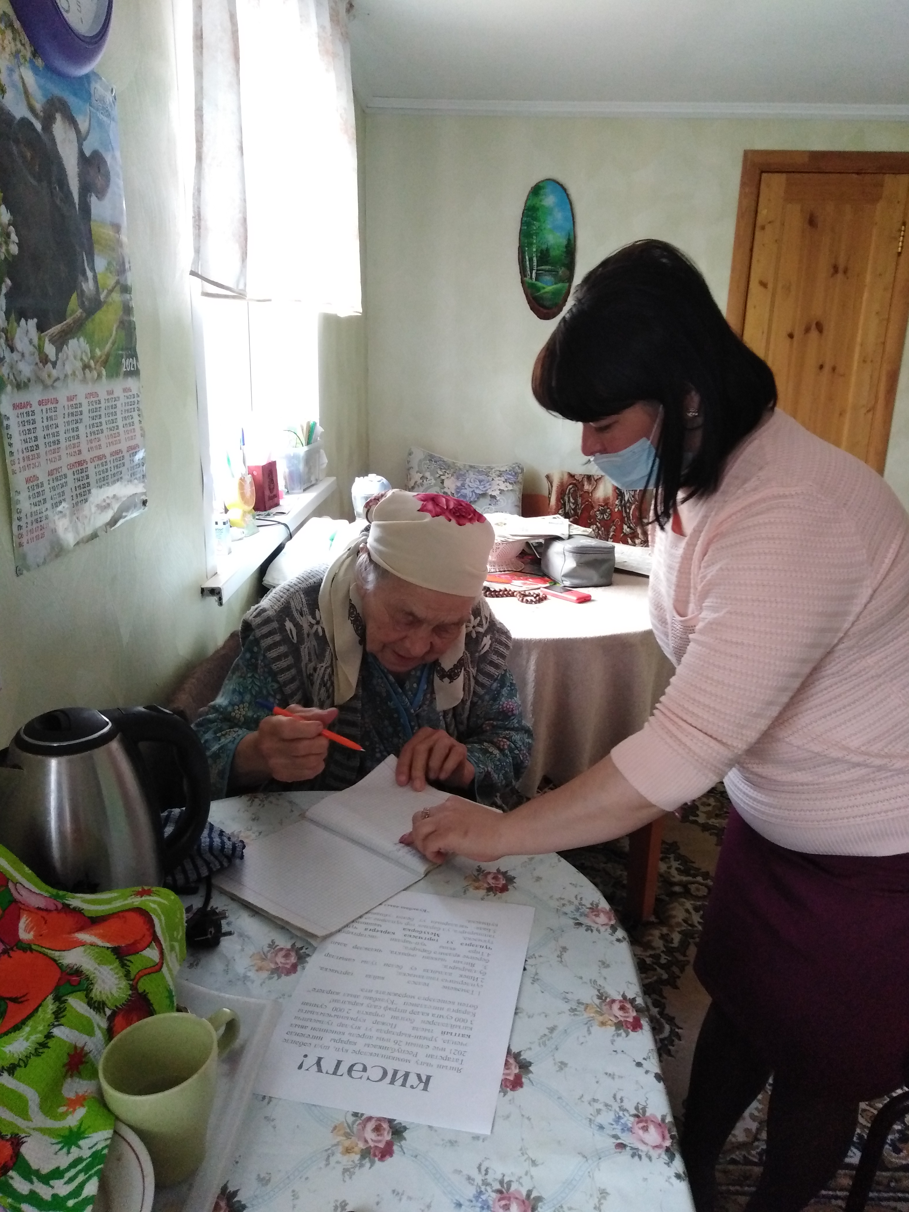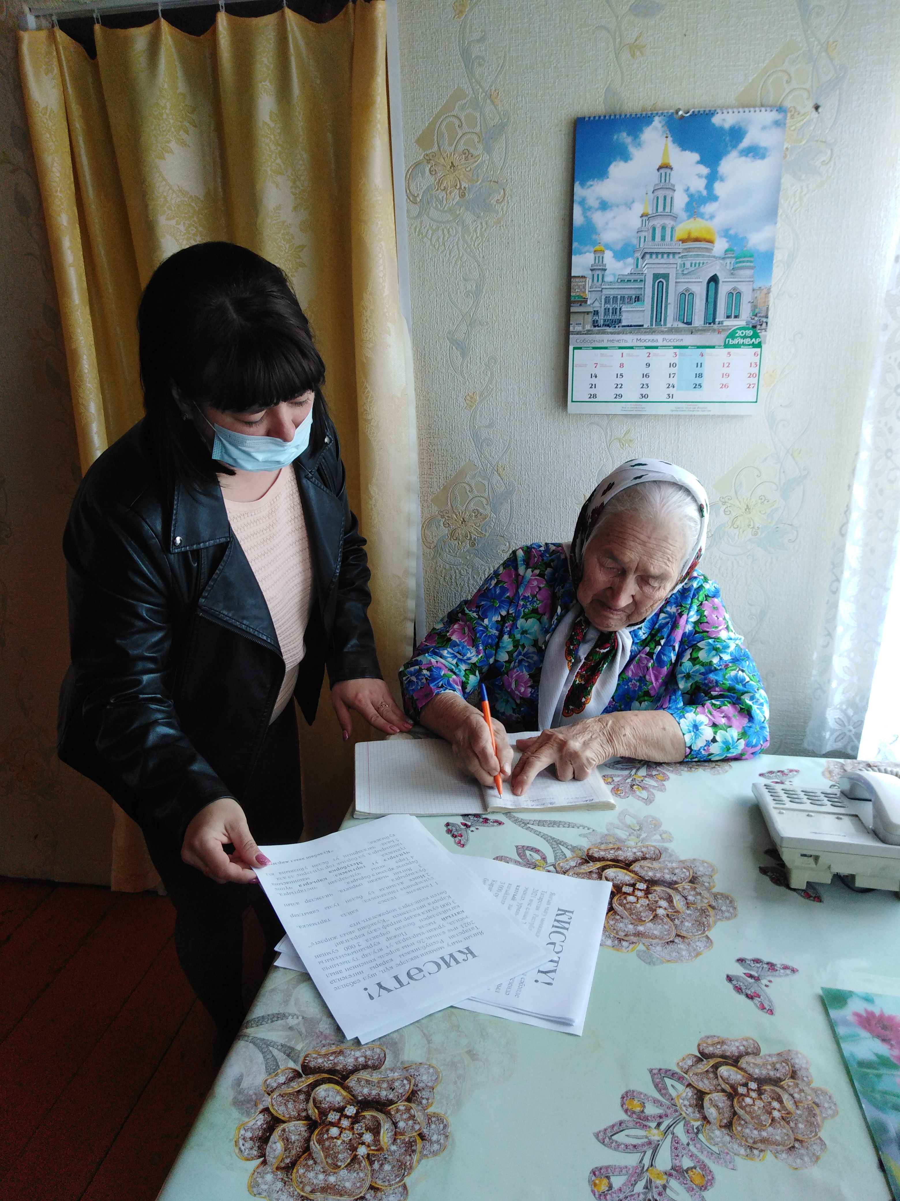 В день памяти жертв политических репрессий глава поселения Рушания Ахметзянова посетила на дому Миназову Замзамию Низамовну и вручила ей продуктовый набор.