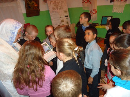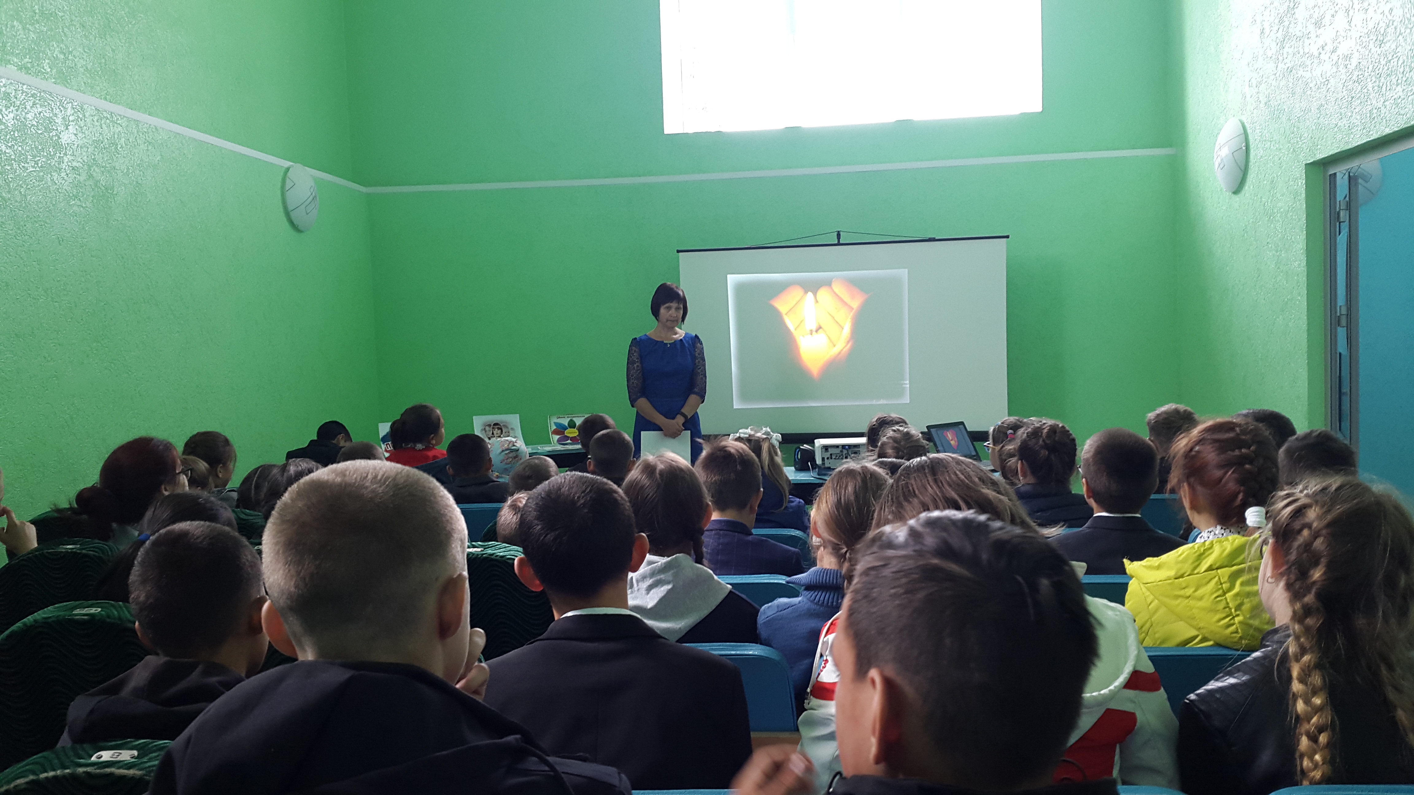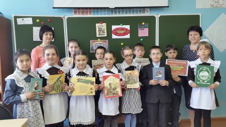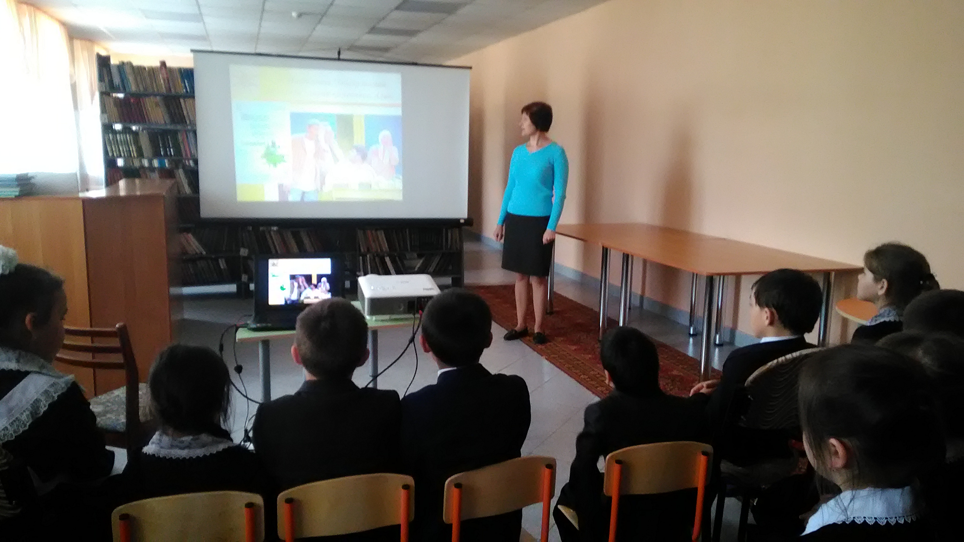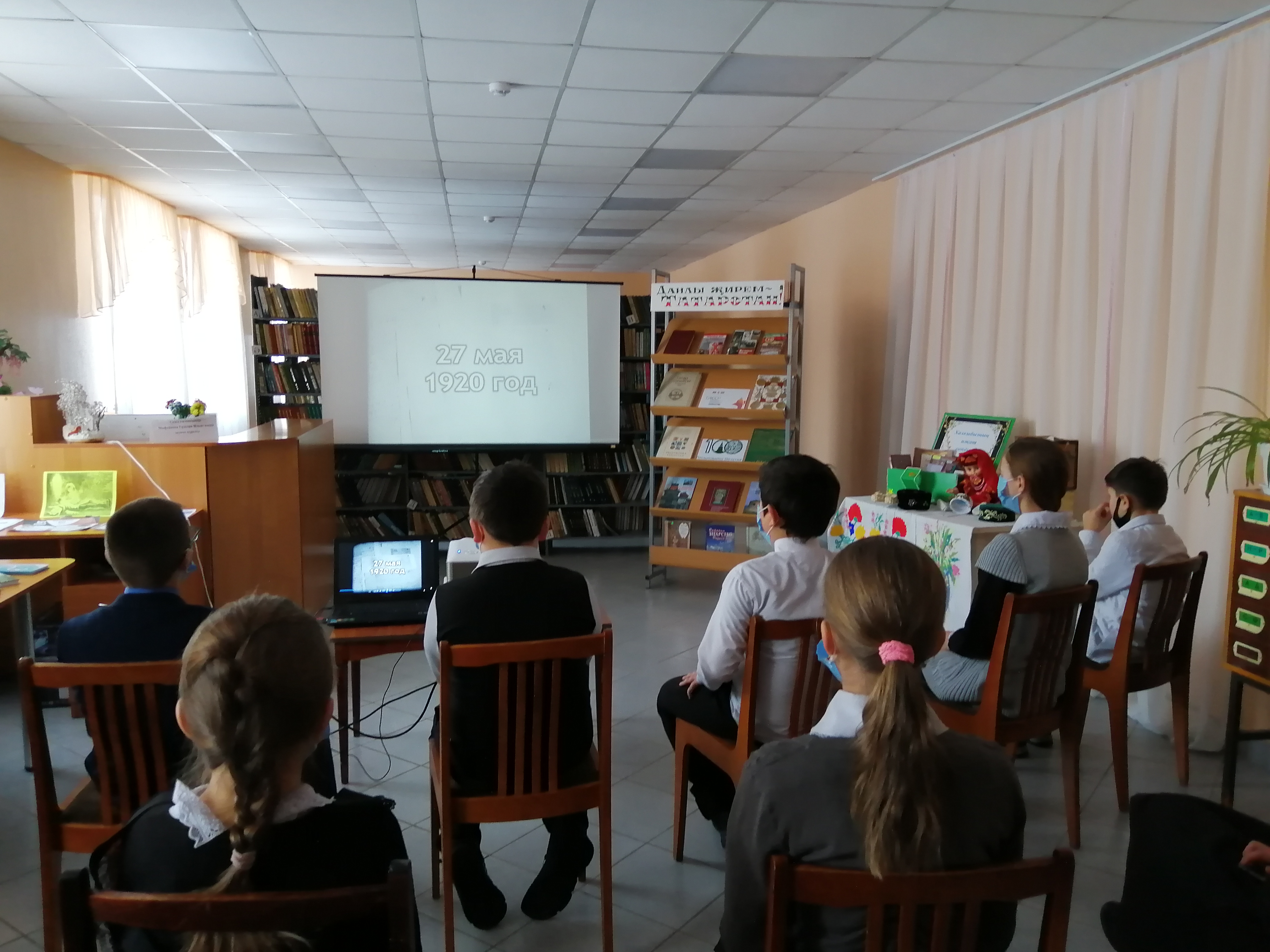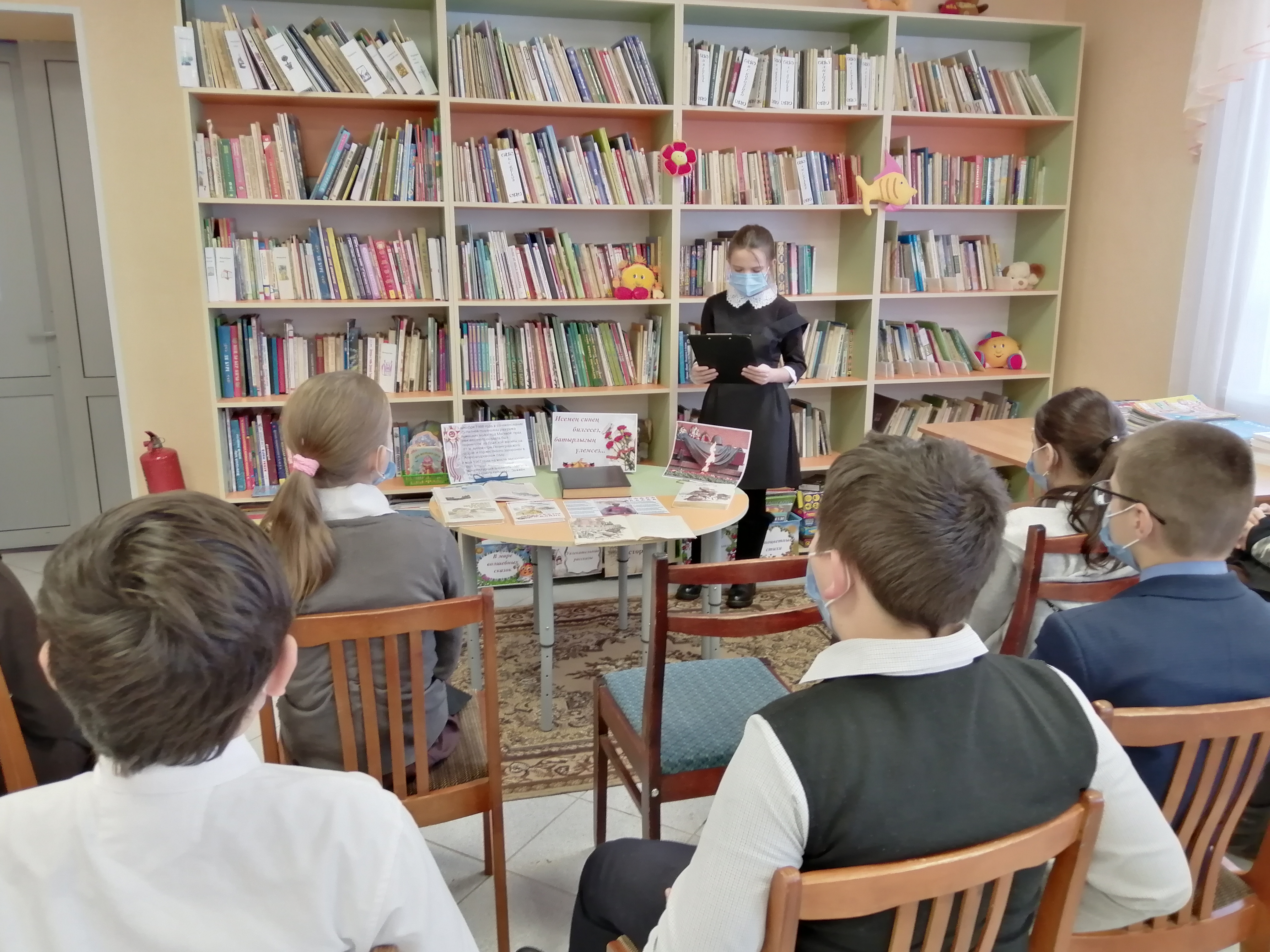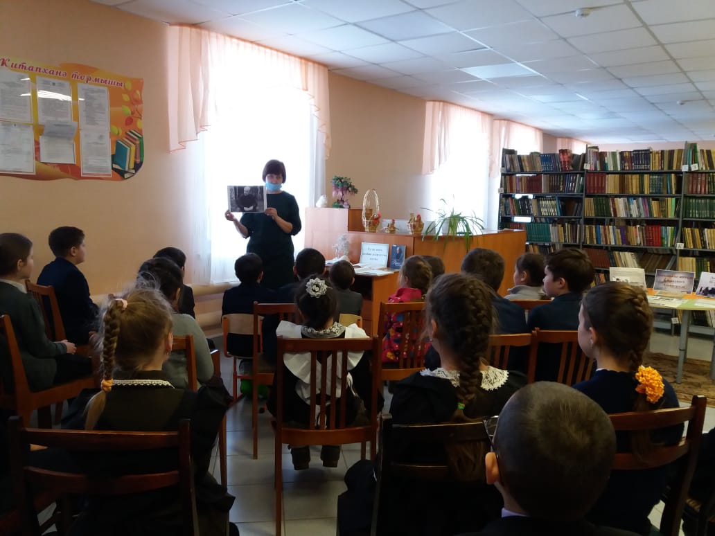 Потом посмотрели электронную презентацию «Великая Отечественная Война». В завершении мероприятия вышли к обелиску, почтили память погибших солдат минутой молчания и возложили цветы. Дети искали из списков погибших фамилию своего деда или родственника.