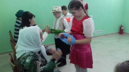 Мероприятие началось показом обряда татарского народа «Проводы в армию». Проводы в армию - это целый ритуал для того, кто уходит в армию; событие не только для родных и близких, но и в целом для всего села.