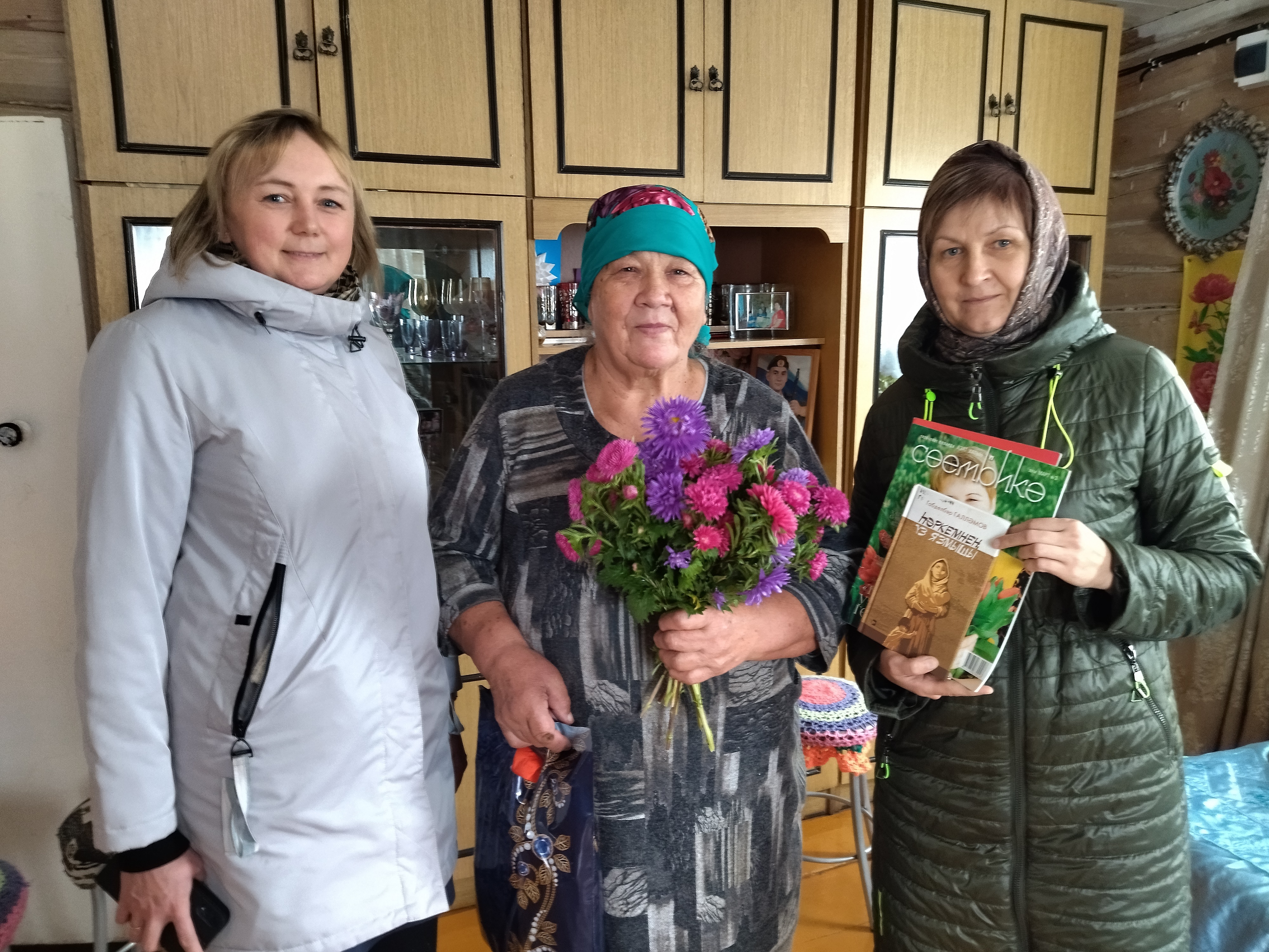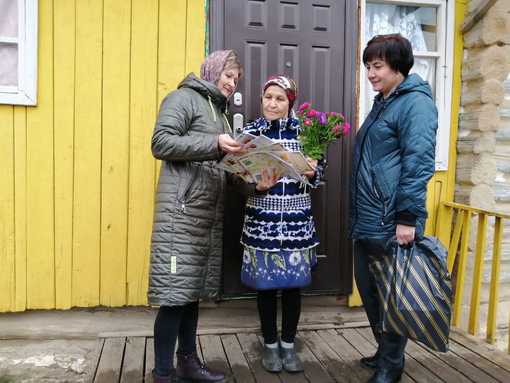Стало хорошей, доброй традицией в этот день навещать своих пожилых на дому. И в этом году перед праздником работники дома культуры, библиотеки совместно с главой поселения навестили своих работников, которые уже на заслуженном отдыхе, также своих активных читателей. Поздравили их с праздником,вручили продуктовые наборы, принесли книги, свежие номера газет и журналов, с пожеланиями доброго здоровья, хорошего настроения, активного долголетия.