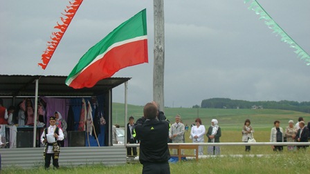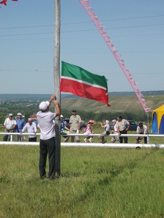 Торжественное поднятие Татарстанского флага удостоился Шакиров Раис механизатор ООО «Маркс» - Батыр плуга-2012.