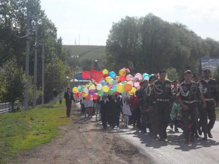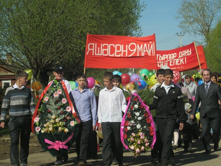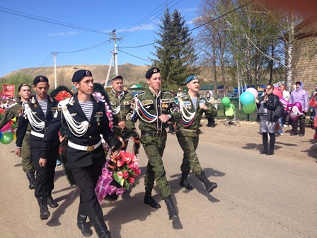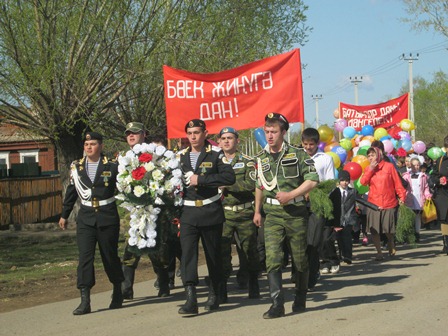 Торжественное мероприятие в с.Куакбаш, по заведенной традиции, начался шествием учащихся Куакбашской ООШ по центральной улице. Возглавляли этот парад Победы бывшие солдаты-срочники.
