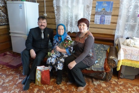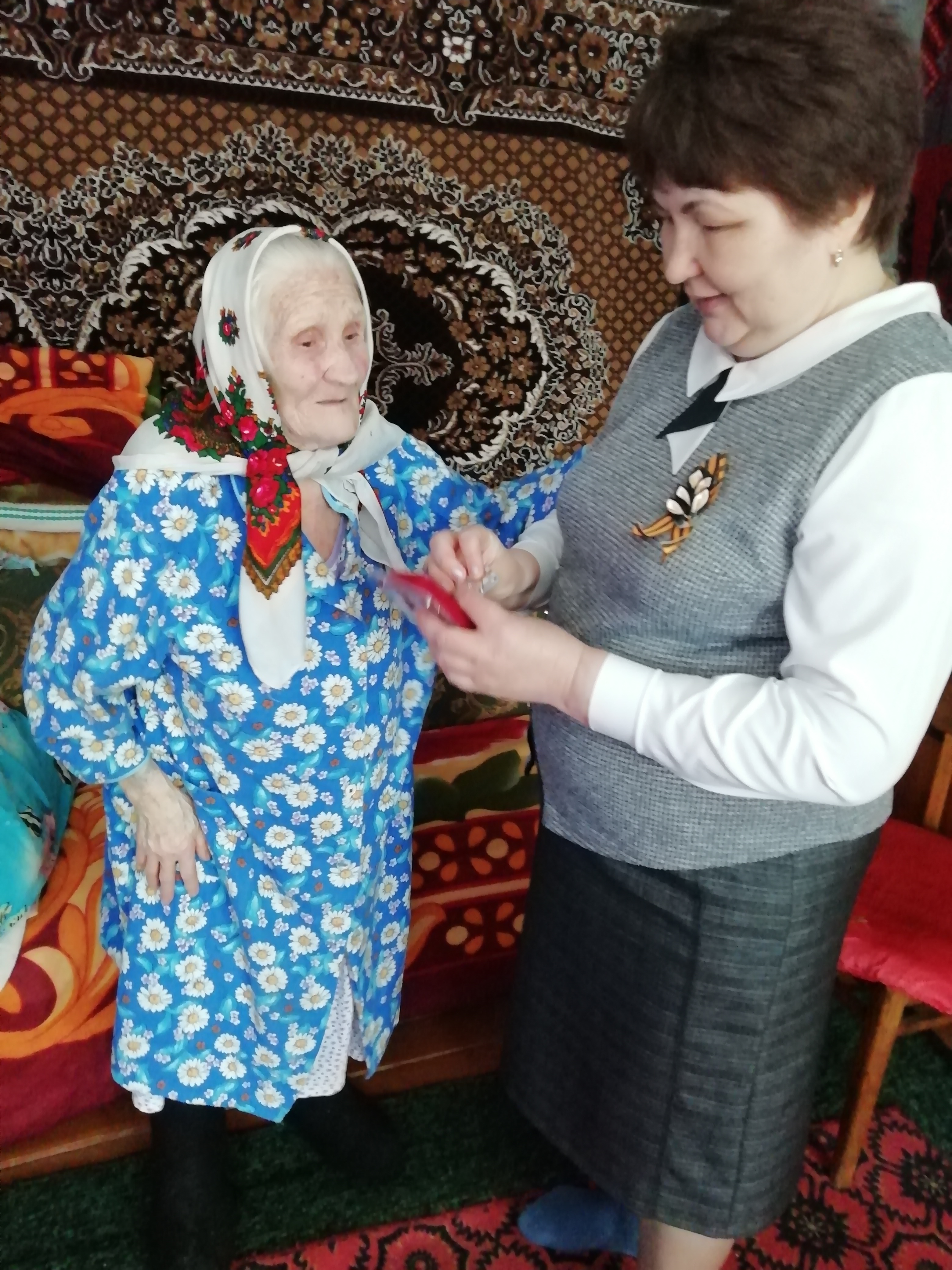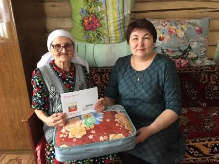 Глава Старошугуровского СП Шигапова Л.М. поздравила с 95 летним юбилеем ветерана ВОВ Гильманову Минбаян и вручила подарок и поздравительное письмо В.В.Путина.
