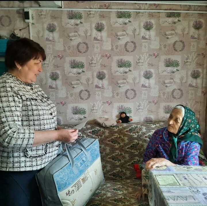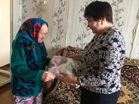Вручение продуктовых наборов тыловикам и вдовам погибших в Великой отечественной войне