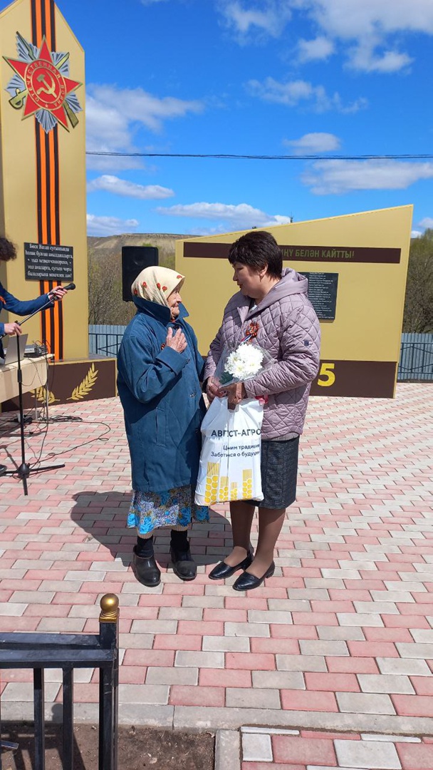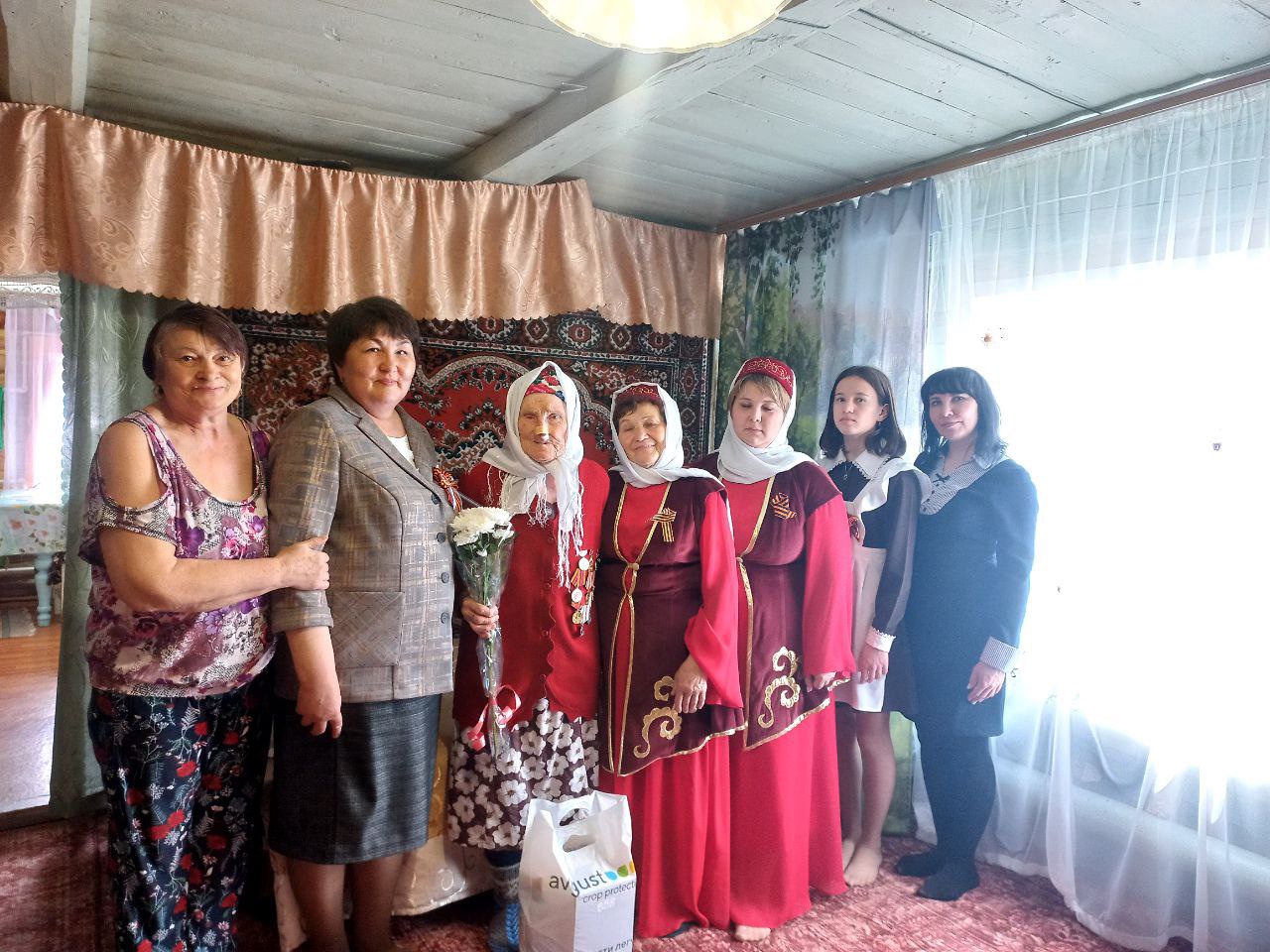Наш дружный коллектив: Глава Старошугуровского сельского поселения Шигапова Лилия Мугтасимовна, ансамбль "Ак калфак" Старошугуровского Дома культуры, ученицы школы им.В.П.Чкалова организовали небольшой концерт в домах тружеников тыла: спели их любимые песни, прочитали стихотворения. Поздравили с наступающим праздником и вручили подарки от ООО «Август-Лениногорск».