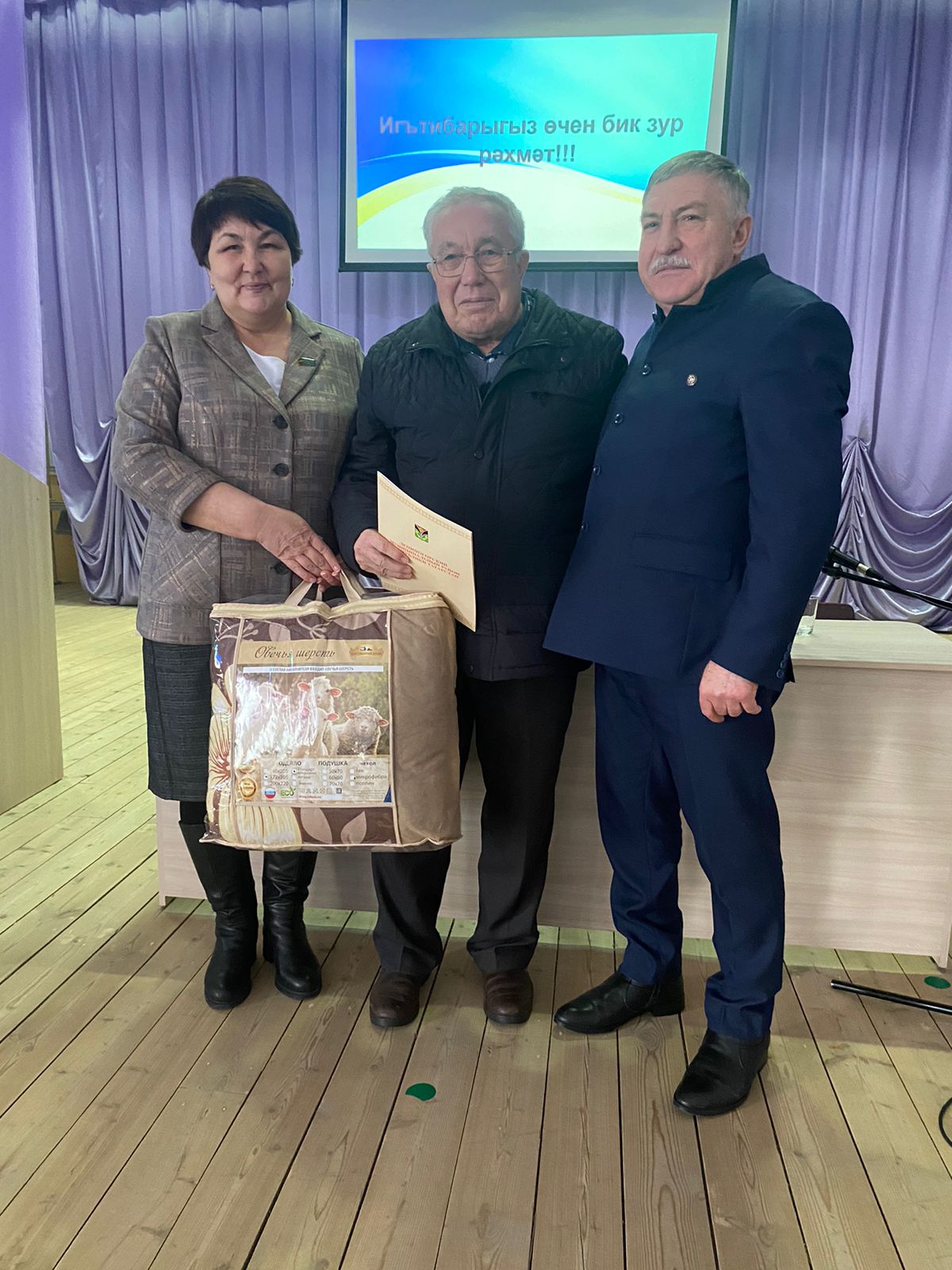 Председатель Финансово-бюджетной палаты Раиль Хамидуллин, Глава Старошугуровского сельского поселения Лилия Шигапова поздравили с Днем Победы и выразили слова благодарности за мирное небо над головой ветеранам войны, труженикам тыла.