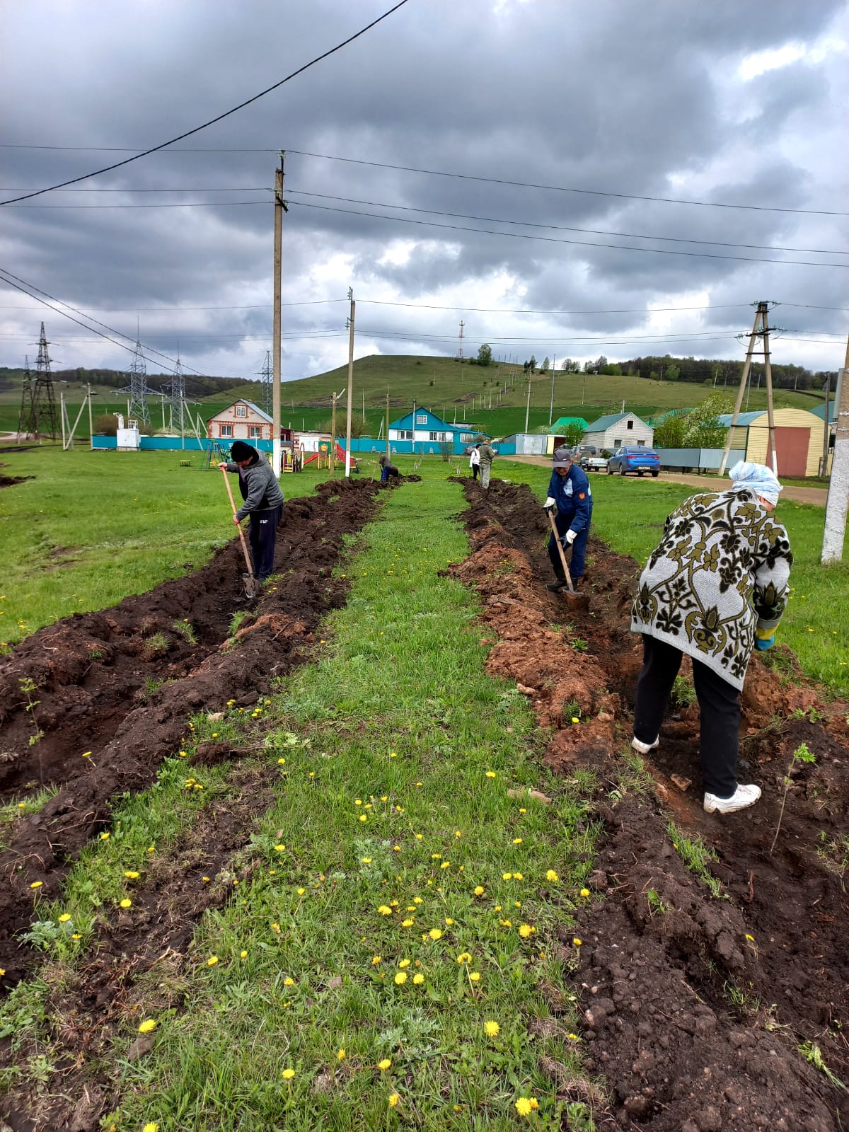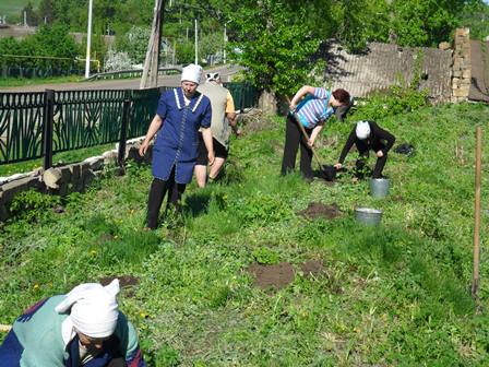 Несмотря на капризы погоды, жители с удовольствием приняли участие в озеленении нашего села.