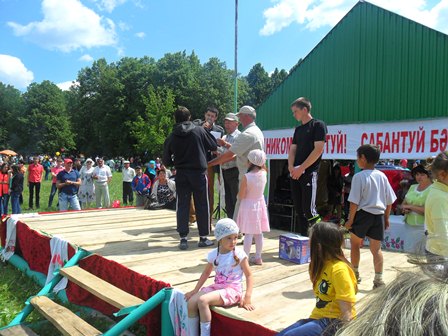 С праздничным концертом выступили артисты, приехавшие из г.Лениногорска. Были организованы национальные игры, в которых участники игр получили ценные призы.