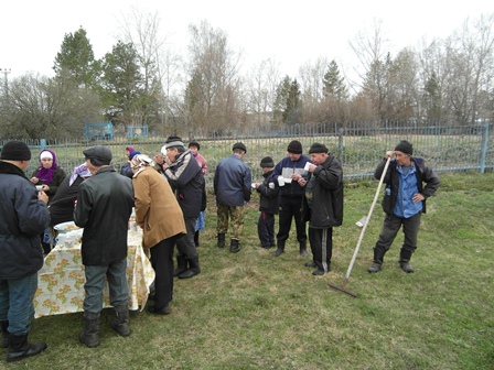 В очистке активное участие приняли около 70 человек нашего села, а по окончании работ было организовано чаепитие для тех, кто принимал участие в уборке кладбища.
