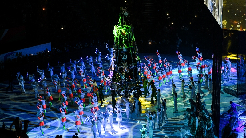 Яңа ел чыршысында «Әкиятнең әйләнеп кайтуы» тамашасы күрсәтелде, төп персонажлар татар һәм рус әкиятләреннән иде. Тамашада меңгә якын артист, эстрада җырчысы, спортчы катнашты.