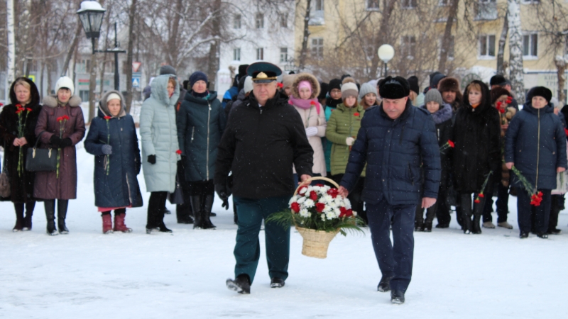 Сугыш кырларында һәлак булганнарны бер минут тынлык белән искә алдылар. Һәйкәлгә чәчәкләр салдылар.