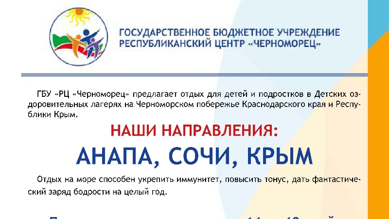 Кара диңгез яры балалар сәламәтләндерү лагерьларына заявкалар кабул ителә
